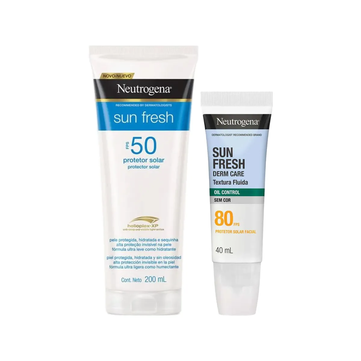 Kit Protetor Solar Neutrogena Sun Fresh Corporal FPS 50 200ml + Facial Derm Care Oil Control Fluido FPS 80 Sem Cor 40ml