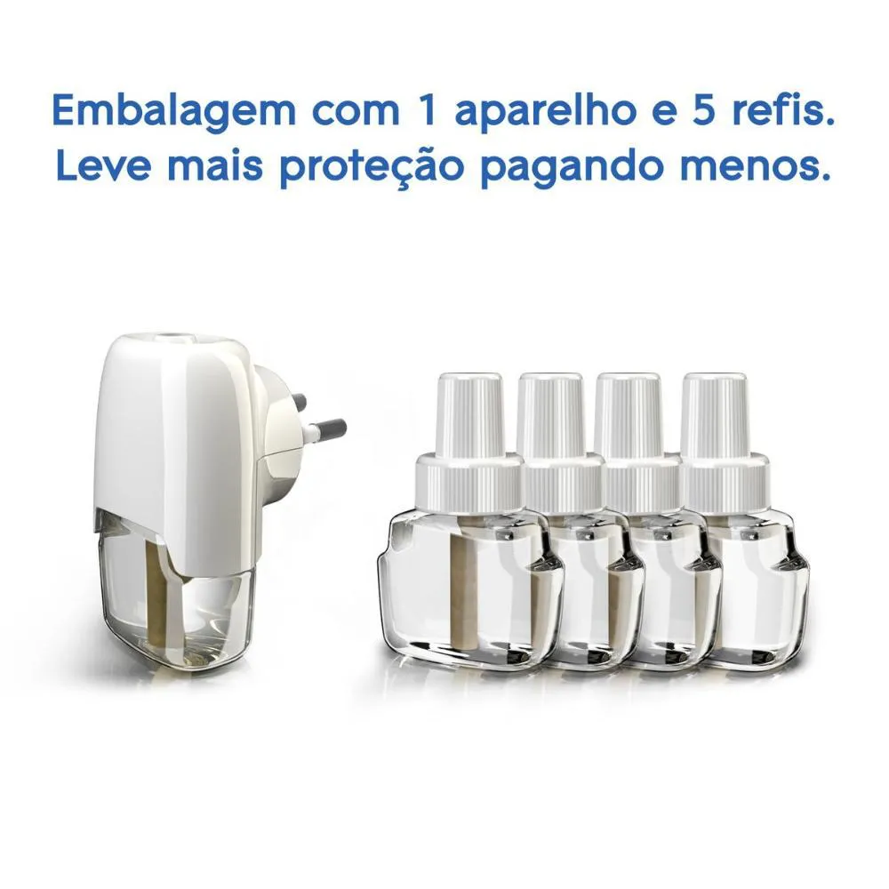 - Kit econômico com 1 aparelho e 5 refis, oferecendo proteção completa para a família.