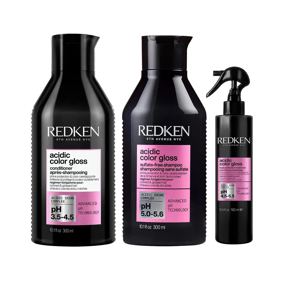 Kit Redken Acidic Color Gloss Shampoo 300ml + Condicionador 300ml+ Leave-In Protetor Térmico 190ml