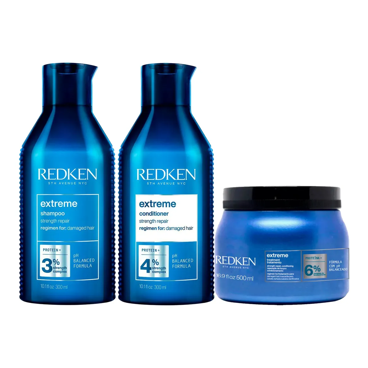 - Composto por Shampoo, Condicionador e Máscara Redken Extreme.