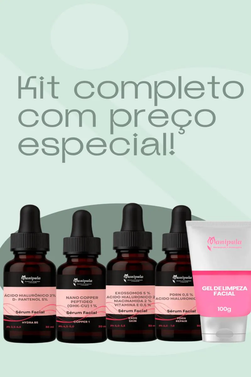 Acido hialuronico 2% + D-pantenol (vit. b5) 5 % - Sérum facial qsp O PDRN Repair SkinLab Manipula é um sérum de alta performance desenvolvido para rotinas avançadas de cuidado com a pele, com foco em regeneração, reparação cutânea e melhora da aparência geral da pele. Sua fórmula é baseada no PDRN (Polidesoxirribonucleotídeo), um ativo biotecnológico obtido a partir do DNA do salmão, amplamente estudado por sua atuação nos processos de regeneração celular e recuperação da pele. O PDRN atua diretamente na comunicação celular e regeneração tecidual, estimulando mecanismos fisiológicos importantes da pele. Seu principal diferencial está na ativação do receptor A2A da adenosina, que contribui para modular processos inflamatórios, reduzir o estresse oxidativo e favorecer a recuperação da pele. Além disso, o ativo demonstra potencial na estimulação da síntese de colágeno, ajudando na melhora da firmeza, textura e aparência da pele ao longo do uso contínuo. Estudos também indicam ação na cicatrização, regeneração de tecidos e melhora da elasticidade, tornando-o um ativo altamente valorizado em dermocosméticos de última geração. Outro ponto relevante é sua atuação na redução de processos inflamatórios e no auxílio à recuperação da pele após agressões externas, como exposição solar, procedimentos estéticos e estresse oxidativo. Com textura leve, rápida absorção e excelente espalhabilidade, o PDRN Repair é ideal para quem busca um cuidado sofisticado, tecnológico e alinhado às tendências mais avançadas da dermatologia estética. A linha SkinLab Manipula reúne ativos consagrados na dermatologia moderna para oferecer dermocosméticos de alta performance e qualidade farmacêutica. Propriedades: • auxilia na regeneração da pele