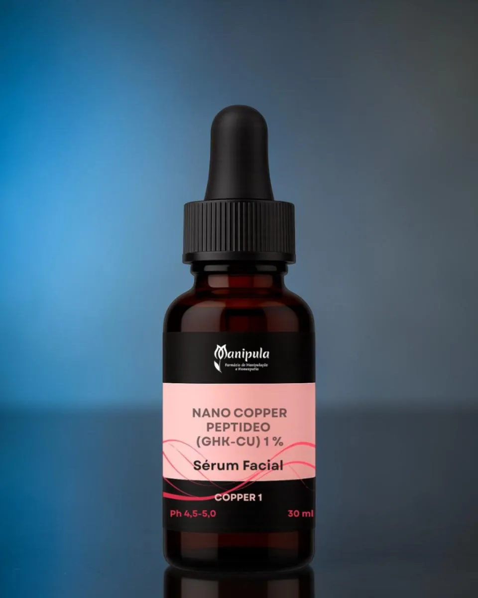 Exossomos 5 % + Ácido Hialurônico 2 % + Niacinamida 2 % + vitamina e 0,5 % - Sérum facial qsp O Copper 1 é um sérum desenvolvido com Nano Copper Peptide (GHK-Cu) 1%, ativo avançado amplamente utilizado em dermocosméticos voltados para regeneração da pele, melhora da firmeza e qualidade cutânea. Sua formulação atua auxiliando na melhora da aparência geral da pele, contribuindo para um aspecto mais uniforme, saudável e revitalizado. É especialmente indicado para rotinas anti-idade que buscam tecnologia e desempenho superior. Com textura leve, rápida absorção e excelente compatibilidade com outros ativos, o produto se adapta facilmente a diferentes rotinas de skincare. A linha SkinLab reúne ativos modernos e reconhecidos para oferecer performance dermatológica e segurança. Propriedades: • auxilia na firmeza da pele