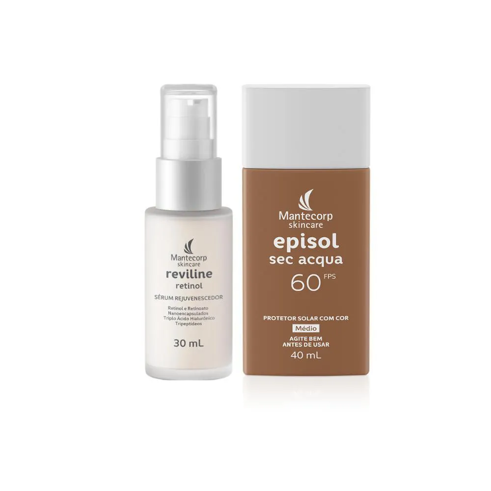 Produtos inclusos no kit: 1 UNIDADE - Rejuvenescedor Facial Reviline Retinol Sérum - 30ml1UNIDADE - protetor solar Facial Episol Sec Acqua Tom médio FPS 60 - 40ml