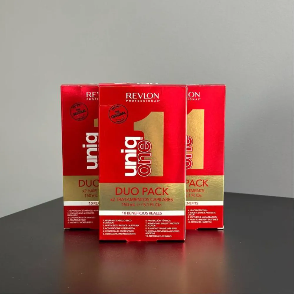 O que é e para que serve? O **Revlon Professional Kit Uniq One All in One Leave-in** é um tratamento capilar multifuncional que transforma a saúde e a estética dos fios. Ideal para quem busca praticidade e resultados profissionais no dia a dia, este kit oferece proteção térmica e solar, hidratação intensa e reparação profunda em um só produto. Com ele, seus cabelos ficam protegidos e revitalizados, prontos para encarar qualquer desafio. Quais os benefícios do Revlon Professional Kit Uniq One All in One Leave-in? - Proteção térmica contra o calor de secadores e chapinhas - Proteção solar que previne danos causados pelos raios UV - Hidratação intensa que mantém os fios saudáveis e luminosos - Reparação profunda que revitaliza os cabelos danificados - Controle do frizz para um acabamento suave e polido - Incremento do brilho natural dos cabelos - Aumento da força capilar diminuindo a quebra - Facilita o desembaraço e previne nós - Proporciona maciez ao toque - Ajuda na manutenção e preservação da cor dos cabelos tingidos Ativos O produto contém ativos poderosos que proporcionam uma transformação completa nos fios, garantindo proteção, hidratação e brilho. Indicação Indicado para todos os tipos de cabelo, o **Revlon Professional Kit Uniq One All in One Leave-in** é perfeito para quem busca uma solução prática e completa para o cuidado capilar diário. Ideal para quem deseja manter os cabelos saudáveis e protegidos contra agressões externas. Modo de uso 1. Aplique o **Revlon Professional Uniq One All in One Leave-in** nos cabelos úmidos ou secos. 2. Distribua uniformemente utilizando um pente ou as mãos. 3. Finalize o penteado como de costume. 4. Não enxágue o produto. O Revlon Professional Kit Uniq One All in One Leave-in é indicado para cabelos tingidos? Sim, o produto é ideal para cabelos tingidos, pois ajuda na manutenção e preservação da cor, além de oferecer proteção contra danos externos. Posso usar o Revlon Professional Kit Uniq One All in One Leave-in diariamente? Sim, o produto é seguro para uso diário e proporciona benefícios contínuos com o uso regular, garantindo cabelos sempre saudáveis e protegidos. Transforme sua rotina de cuidados capilares e descubra o poder do **Revlon Professional Kit Uniq One All in One Leave-in**. Adquira já o seu na Época Cosméticos! Meta Título: Revlon Kit Uniq One Leave-in: Proteção e Hidratação