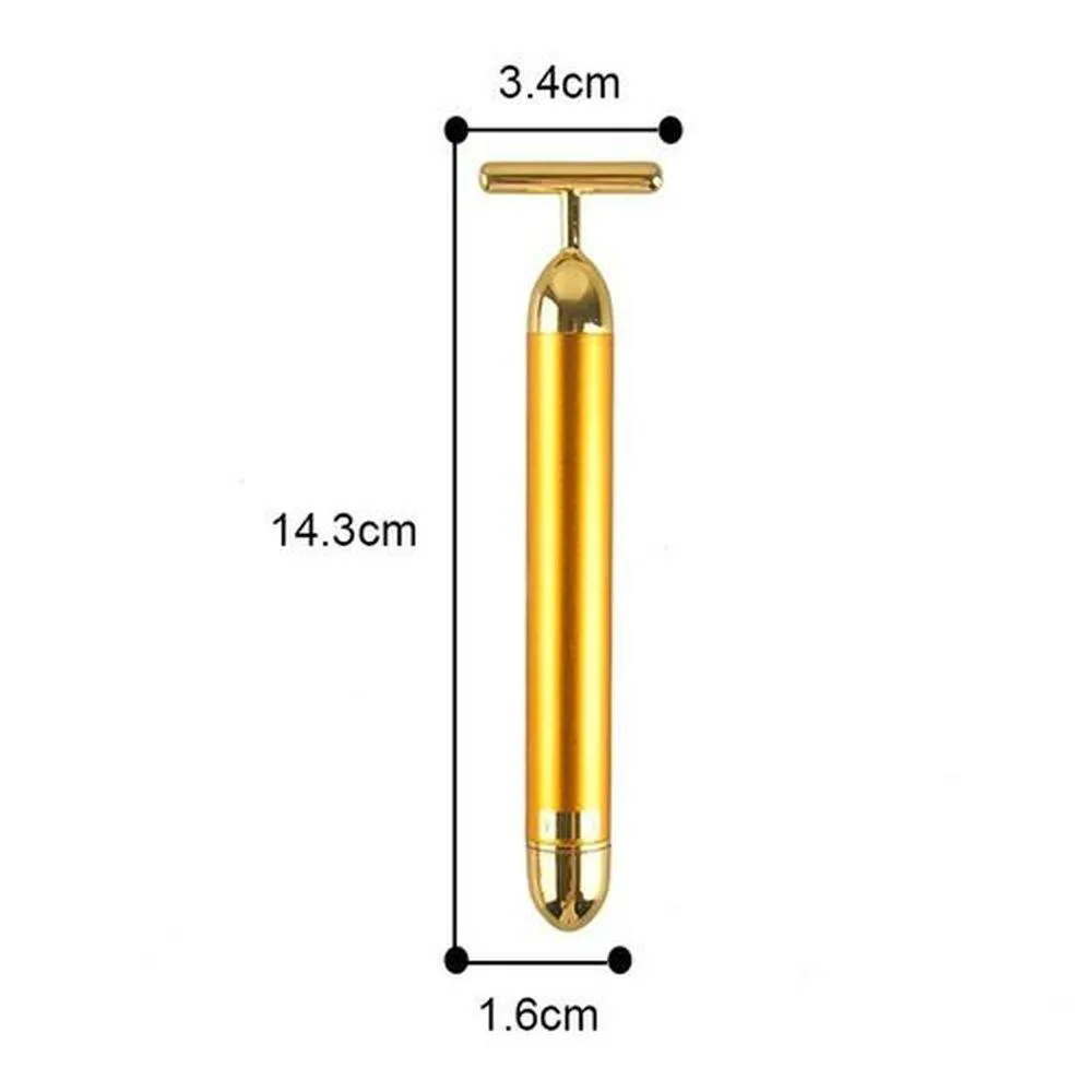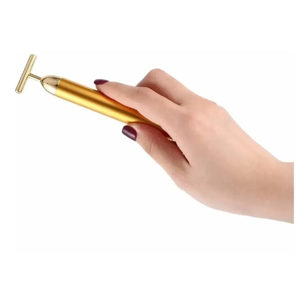 A Pedra Jade é adorada pelas pessoas do Oriente, é cheia de significados e propriedades, sendo utilizada há milênios pelos povos orientais.São muitas as propriedades da Pedra Jade, sendo que a mais comum é que sua utilização melhora a existência da pessoa, equilibrando as energias e os chacras, além dos efeitos relaxantes e rejuvenescedores.A MASSAGEM COM O ROLO DE JADE PROPORCIONA:- Retarda o envelhecimento da pele;- Promove a circulação sanguínea e o metabolismo da superfície da pele com o uso a longo prazo;- Pode reduzir as linhas dos olhos;- Ajuda na prevenção de rugas;- Promove bem estar devido a massagem relaxante;- Fazer massagem uma vez por dia, a cada 10-15 minutos. Além disso, o rolinho de massagem pode ser colocado em um recipiente com água quente, e depois efetuar a massagem para ajudar a expandir os poros e ativar a circulação sanguínea;O MASSAGEADOR FACIAL GOLD T-BAR foi criado com uma estrutura antimicrobiana para contato seguro com sua pele. Proporciona uma massagem terapêutica extremamente relaxante e rejuvenescedora, otimizando a circulação sanguínea da pele, proporcionando maior elasticidade e auxiliando a manutenção da hidratação da pele, benefícios resultantes de sua massagem vibratória.O massageador funciona a um processo vibratório de 6000 rotações por minuto, proporcionando um estímulo muscular facial para conseguir um efeito de facelift, que aumenta o tônus muscular da pele do rosto, auxilia a diminuição dos bolsões ao redor dos olhos, reduz as rugas ao redor dos lábios, testa e pescoço.Design compacto e elegante, perfeito para levar em sua bolsa.