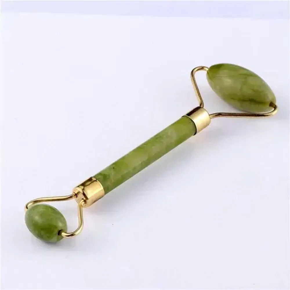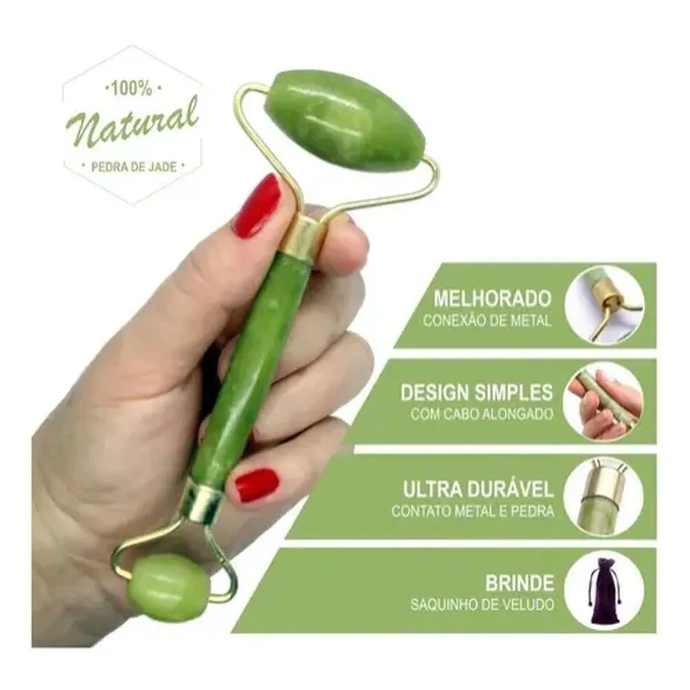 Kit Rolo Facial Pedra de Jade Rolo Verde + Massageador Anti Rugas Idade Firma a Pele e Rejuvenesce