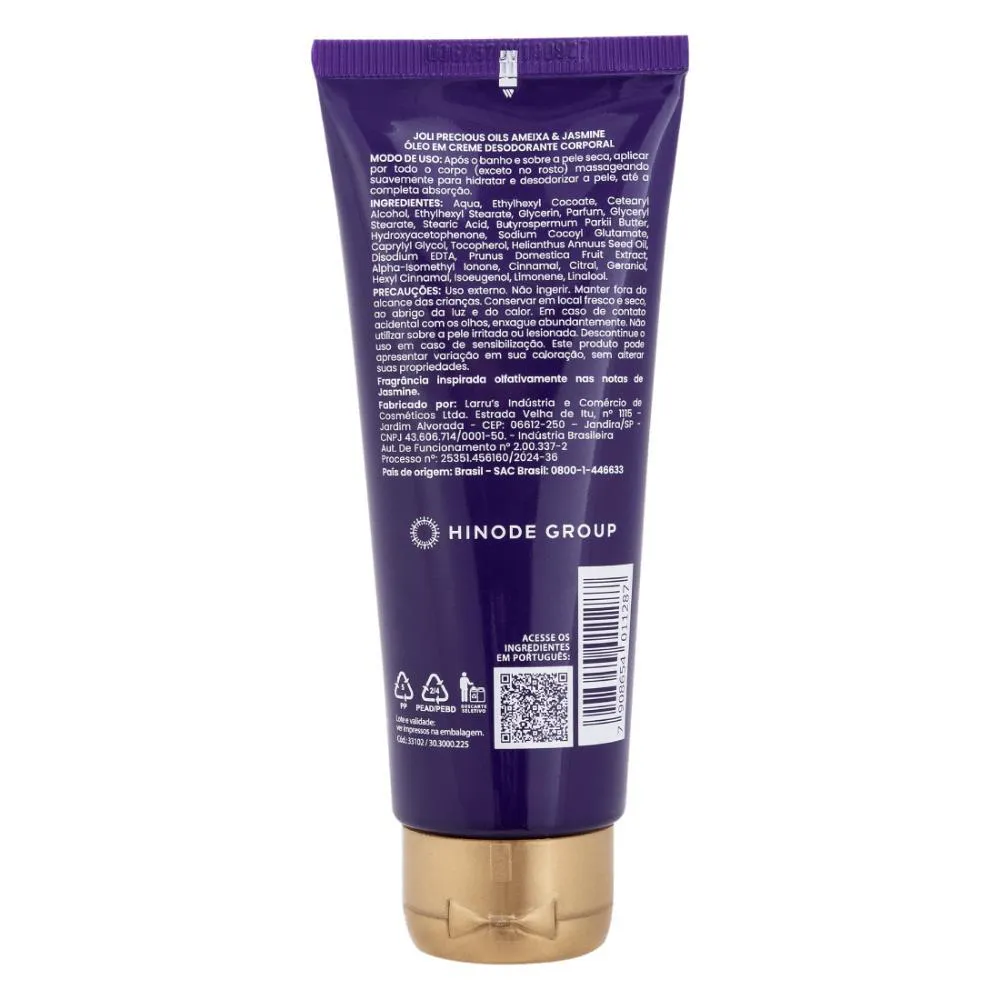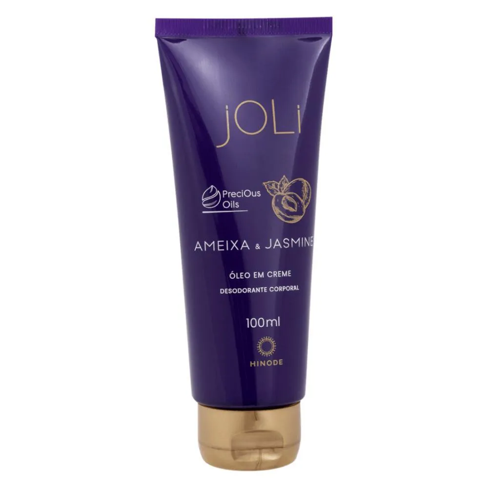 - 1 Óleo em Creme Hidratante Corporal Joli Ameixa (100 ml): Hidratação desde a primeira aplicação, com textura leve e fragrância sofisticada.
