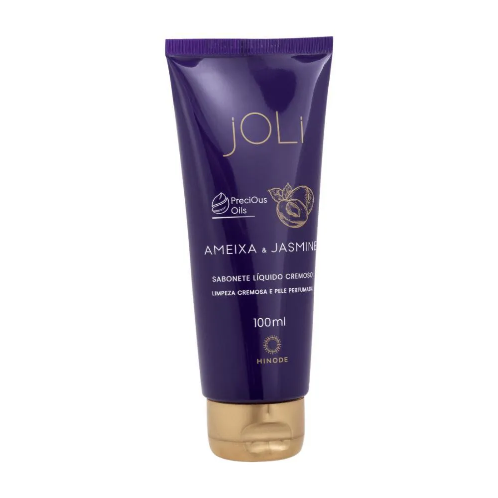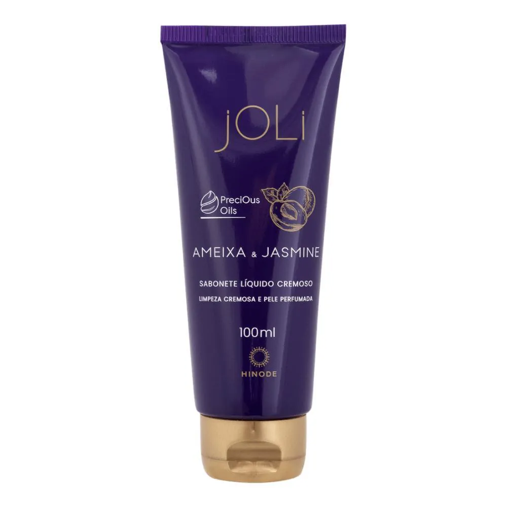 - 1 Sabonete Líquido Corporal Joli Ameixa (100 ml) – Novo: Limpeza cremosa e perfumação duradoura. Enriquecido com glicerina, ajuda a manter a hidratação natural da pele.