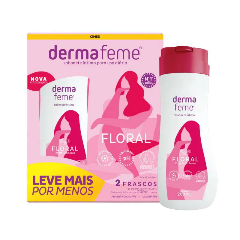 Kit Sabonete Líquido Intimo Dermafeme 200ml C/ 2 Unidades Floral.