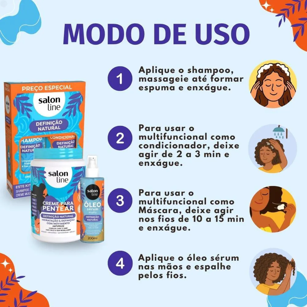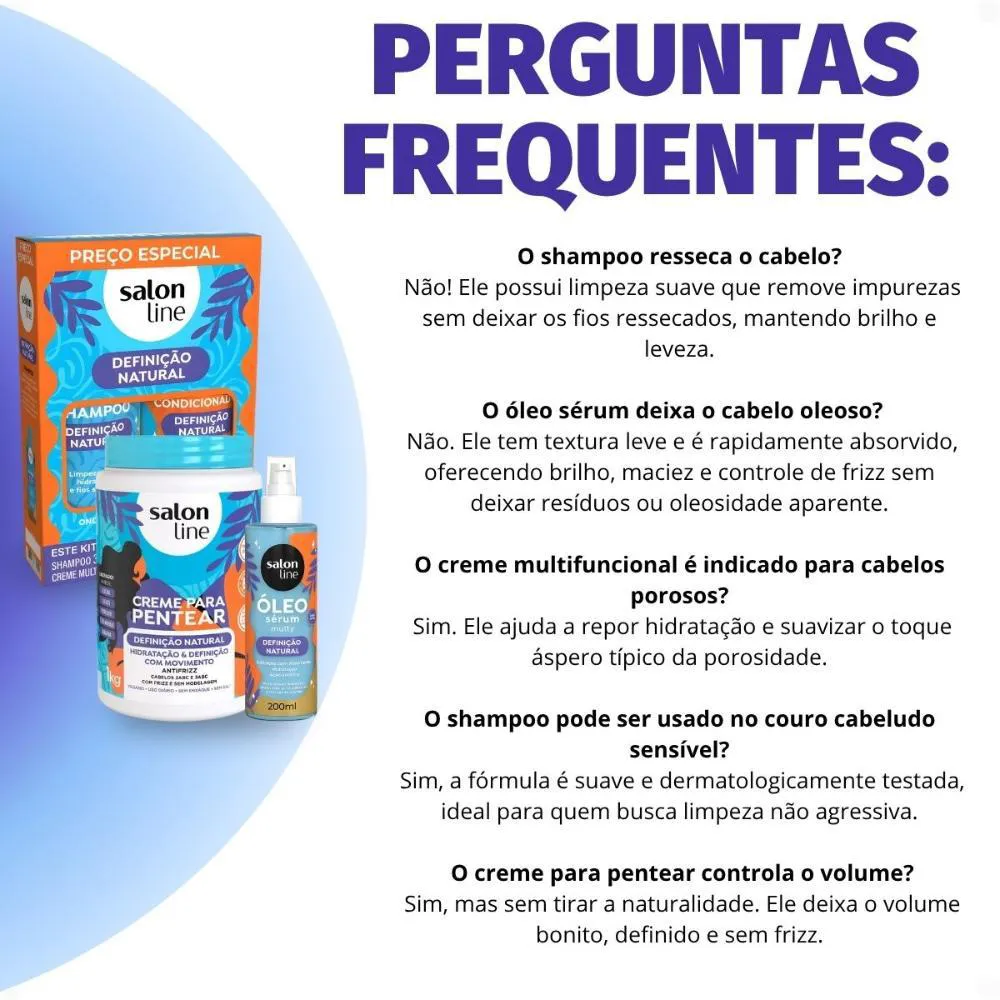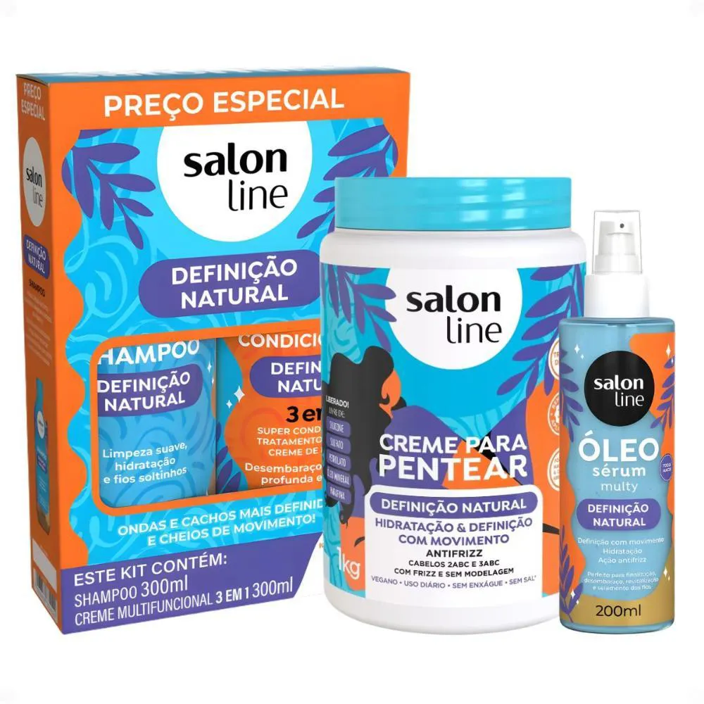 Kit Salon Line Definição Natural: Shampoo, Creme Multifuncional 300Ml, Creme para Pentear 1Kg e Óleo Sérum Capilar 200Ml