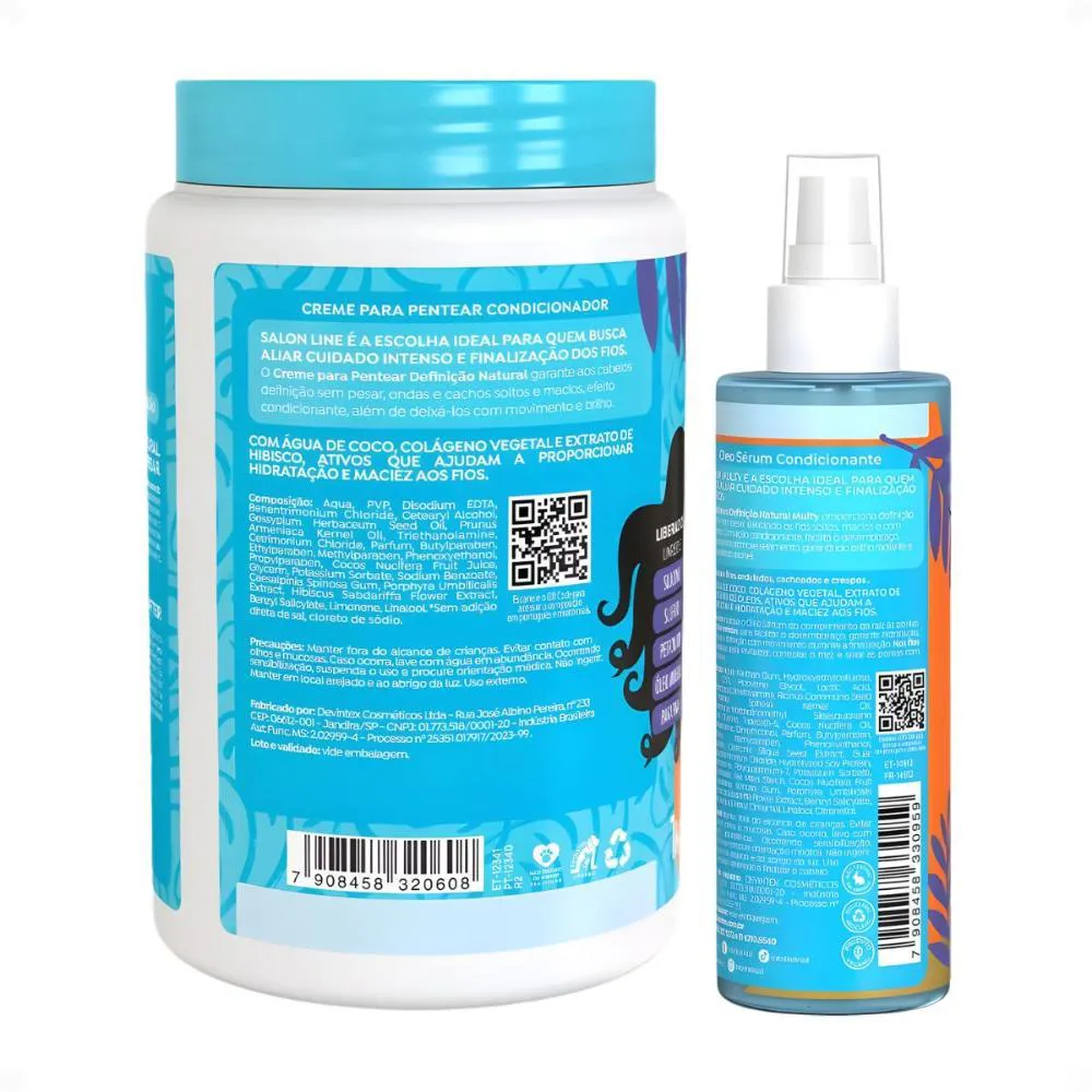 Kit Salon Line Definição Natural: shampoo, Creme Multifuncional 300ml, Creme Para Pentear 1kg e Óleo Sérum Capilar 200ml