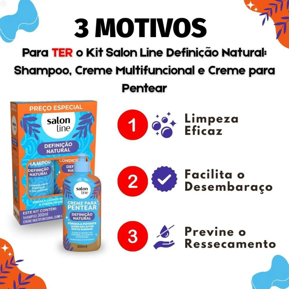 - Kit da linha Definição Natural da SALON LINE, garantindo a sinergia perfeita entre os produtos para resultados potencializados.