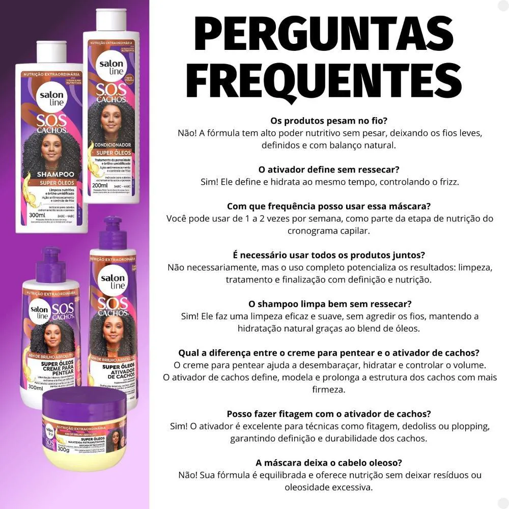 Kit Salon Line Sos Cachos Super Óleos: Shampoo e Condicionador + Creme para Pentear, Ativador de Cachos e Máscara