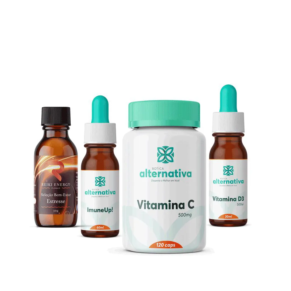 Descubra o segredo do bem-estar e proteção com a Farmacinha Alternativa Proteção do Casal, um kit cuidadosamente desenvolvido para elevar sua saúde e a de quem você ama. Este kit é ideal para quem busca fortalecer o sistema imunológico sem abrir mão de um estilo de vida ativo e produtivo. Composto por elementos essenciais como ImuneUp, vitamina C, Vitamina D3 e floral para Estresse, ele oferece um tratamento completo e eficaz. O ImuneUp vem em frascos de 60mL que atuam diretamente no aumento da imunidade, garantindo proteção diária com apenas 10 gotas duas vezes ao dia. A vitamina c, em cápsulas práticas, é um potente antioxidante, vital para a proteção contra agressores externos e melhoria da saúde em geral, com apenas uma cápsula diária. A Vitamina D3, essencial para a absorção de cálcio, auxilia na saúde óssea e no equilíbrio do corpo, com seu uso sublingual adaptável de 1 a 4 gotas ao dia. Culminando com o Floral para Estresse, que promove calma e tranquilidade em tempos de tensão, proporcionando equilíbrio mental e emocional. Este kit não só fortalece o corpo como também cuida da mente, oferecendo cerca de dois meses de cuidados intensivos e preventivos sem riscos de efeitos colaterais ou contraindicações. Todos os componentes foram rigorosamente preparados para garantir qualidade e eficácia. Priorize sua saúde e desfrute dos benefícios de uma vida equilibrada, protegida e cheia de vitalidade. Transforme a rotina, cuidando de você e de quem você ama com soluções inovadoras e naturais. Com a Farmacinha Alternativa, cada dia é uma nova oportunidade para viver melhor e com mais disposição!