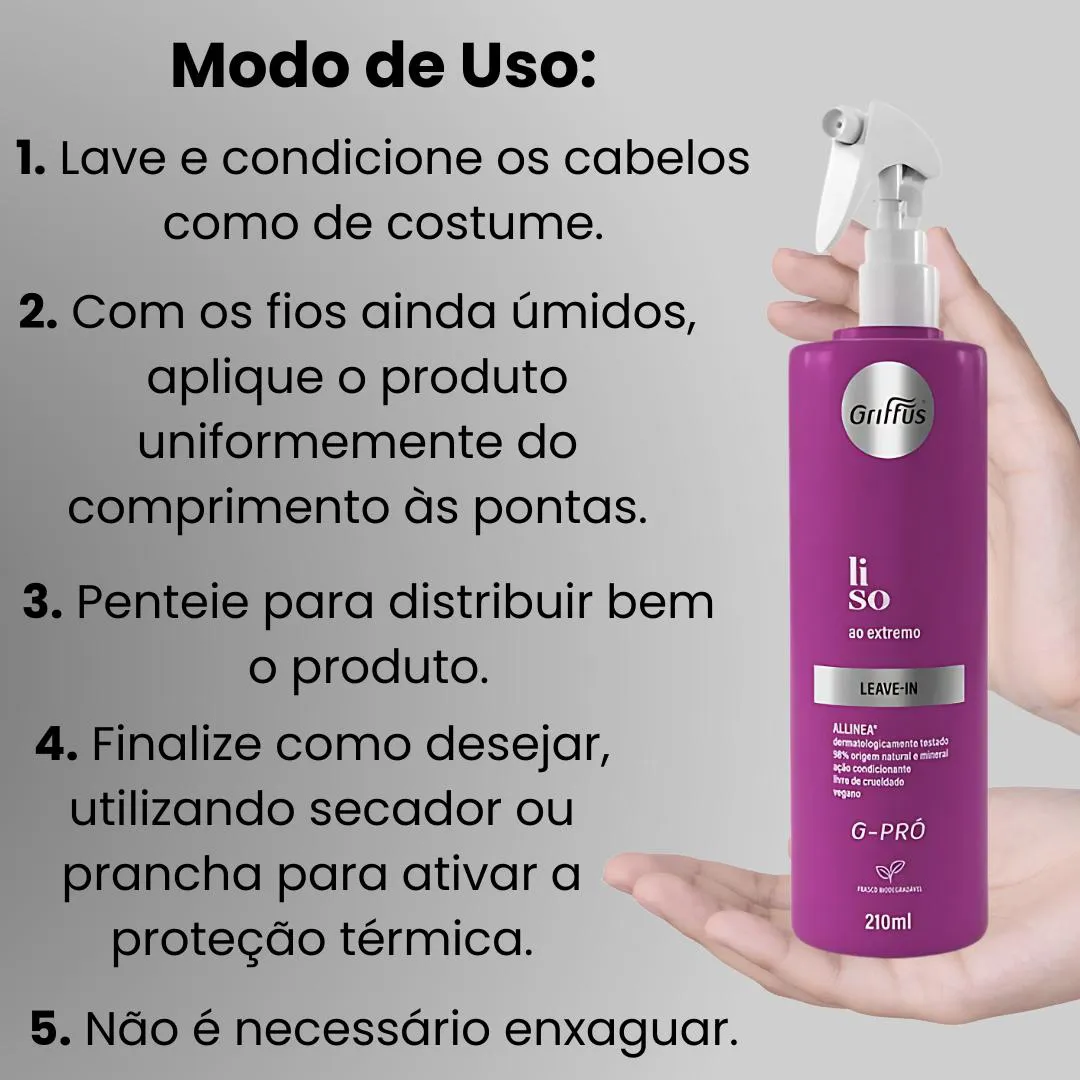 1 Leave-In Griffus G-Pró Liso ao Extremo 210ml Observação importante do fabricante: é normal que aparelhos elétricos novos liberem uma leve fumaça ou odor nas primeiras utilizações devido ao aquecimento dos materiais. Esse processo é temporário e não indica defeito. Não espere mais para transformar a sua rotina. Adquira agora o Lizze Supreme e descubra como é possível unir velocidade, qualidade e acabamento profissional em um único secador. Uma ferramenta indispensável para quem não abre mão de resultados impecáveis. Avaliações de clientes: Maria Silva – Cabeleireira, São Paulo/SP