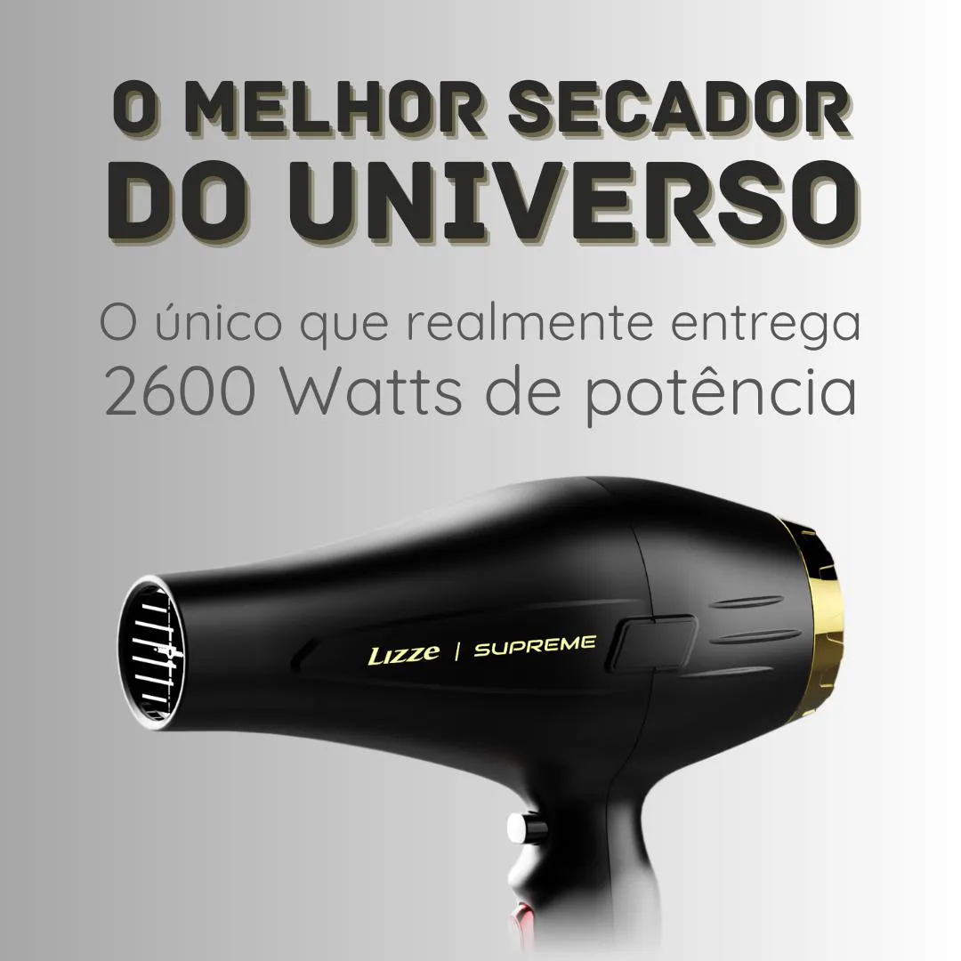 “Uso no dia a dia na barbearia, ele é potente e aguenta o tranco. Cabo grande ajuda bastante, não fico preso. To satisfeito demais.” Secador de Cabelo Lizze Supreme 2600W Profissional com Leave-In Lizze Supreme 2600W com motor AC profissional, 3 temperaturas, 2 velocidades, ar frio, cabo 3m e leave-in. Potência e resultados de salão.