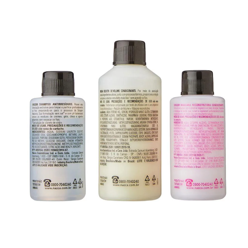 Descrição: O Kit Selagem/Redutora Origem Todos Tipos é um produto de tratamento capilar que visa alisar e reduzir o volume dos fios. Sua fórmula exclusiva conta com Queratina Vegetal e os óleos de argan, macadâmia e karité, que nutrem e regeneram profundamente os cabelos, proporcionando um liso com movimento natural. Modo de usar: