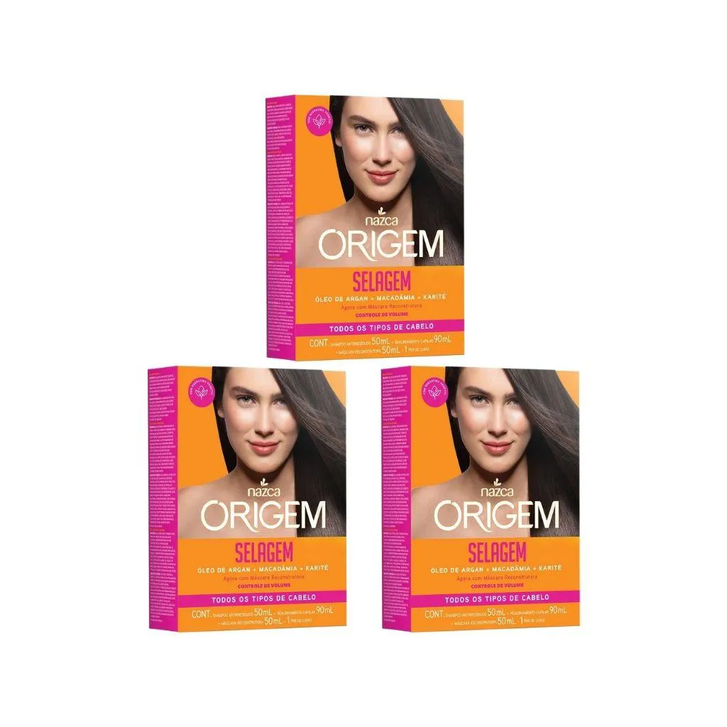 Descrição: O Kit Selagem/Redutora Origem Todos Tipos é um produto de tratamento capilar que visa alisar e reduzir o volume dos fios. Sua fórmula exclusiva conta com Queratina Vegetal e os óleos de argan, macadâmia e karité, que nutrem e regeneram profundamente os cabelos, proporcionando um liso com movimento natural. Modo de usar: