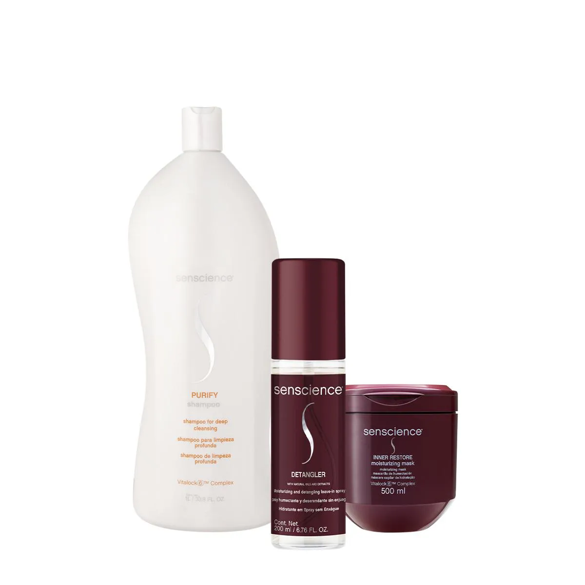 Kit Senscience Purify Shampoo Inner Restore Máscara g Detangler Leave-in (3 Produtos)