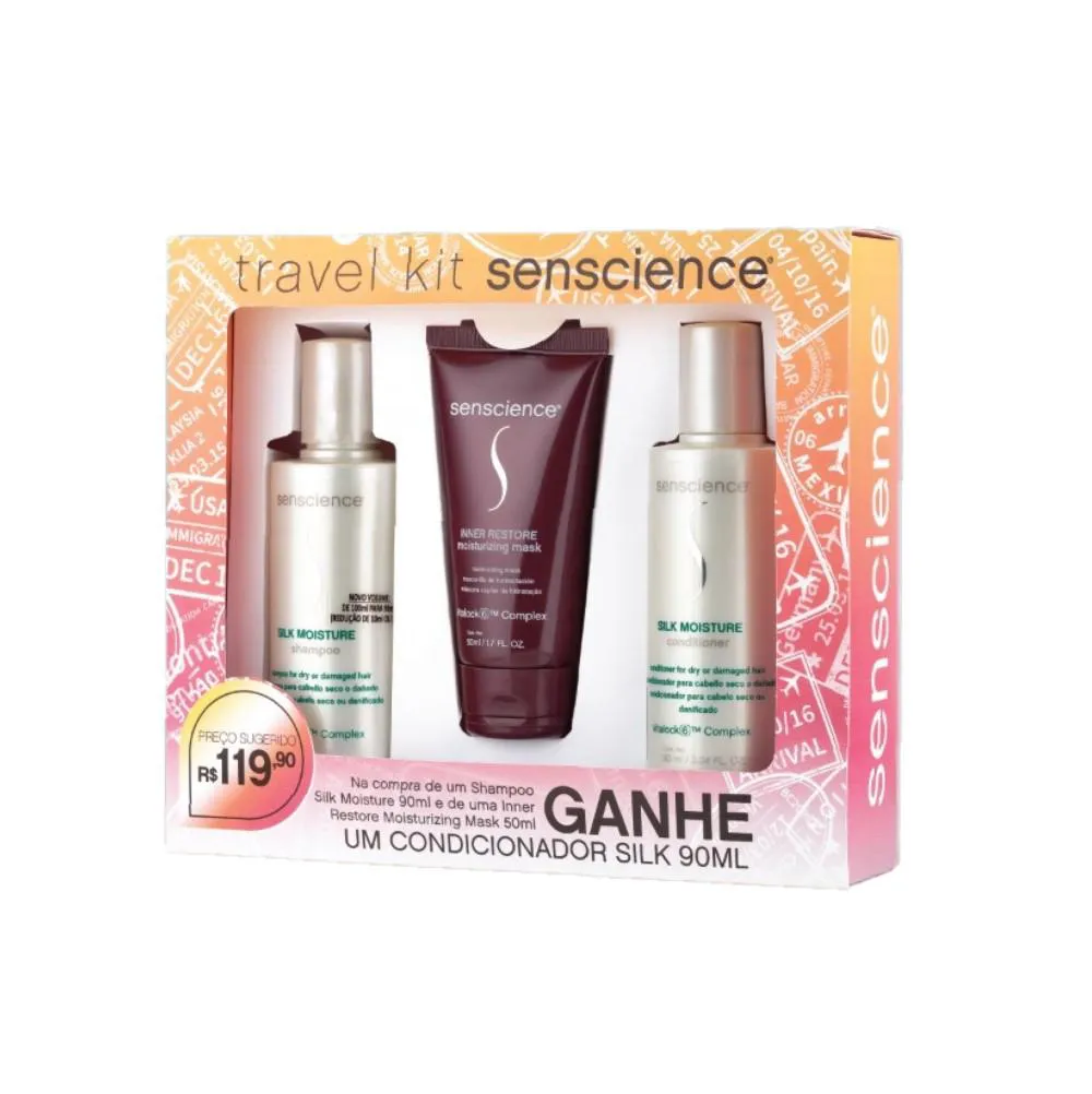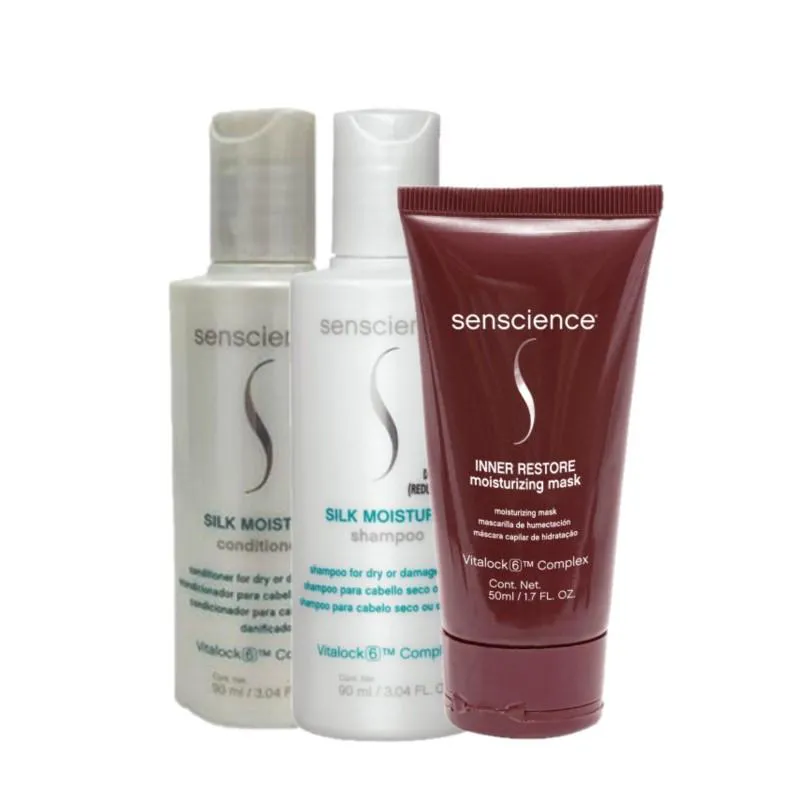 Kit de tratamento para cabelos danificados, grossos e secos em miniatura. Kit Senscience Travel restaura profundamente os fios para recuperar sua força e aspecto saudável com muito brilho e maciez. Vem em uma edição limitada perfeita para te acompanhar em viagens e passeios. Kit Senscience Travel traz os grandes sucessos da marca para que você sinta seu cabelo recuperado e revitalizado. Ele possui alto poder de hidratação, além de reparar as cutículas danificadas, o que deixa uma luminosidade intensa. Também resgata a força e a resistência, de forma a conferir fios saudáveis e incrivelmente bonitos. Contém Senscience Silk Moisture - shampoo 100ml: mesma formulação do shampoo em um tamanho ideal para viagens. Senscience Silk Moisture - condicionador 100ml: mesma formulação do condicionador em um tamanho ideal para viagens. Senscience Inner Restore Deep Moisturizing - máscara de Hidratação 50ml: para cabelos secos ou danificados, restaura, fortalece e hidrata profundamente enquanto restabelece os níveis de água dentro do fio.
