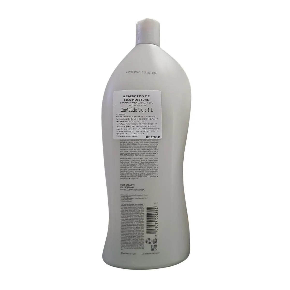 Senscience Silk Moisture - shampoo 1L: limpa, hidrata e restaura os fios que sofreram os mais variados danos, tanto por ferramentas térmicas, processos químicos ou fatores ambientais.
