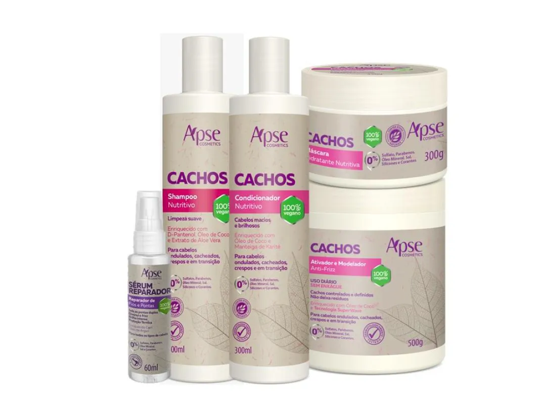 - Kit completo para cuidados específicos de cabelos cacheados, oferecendo hidratação e nutrição em todas as etapas.