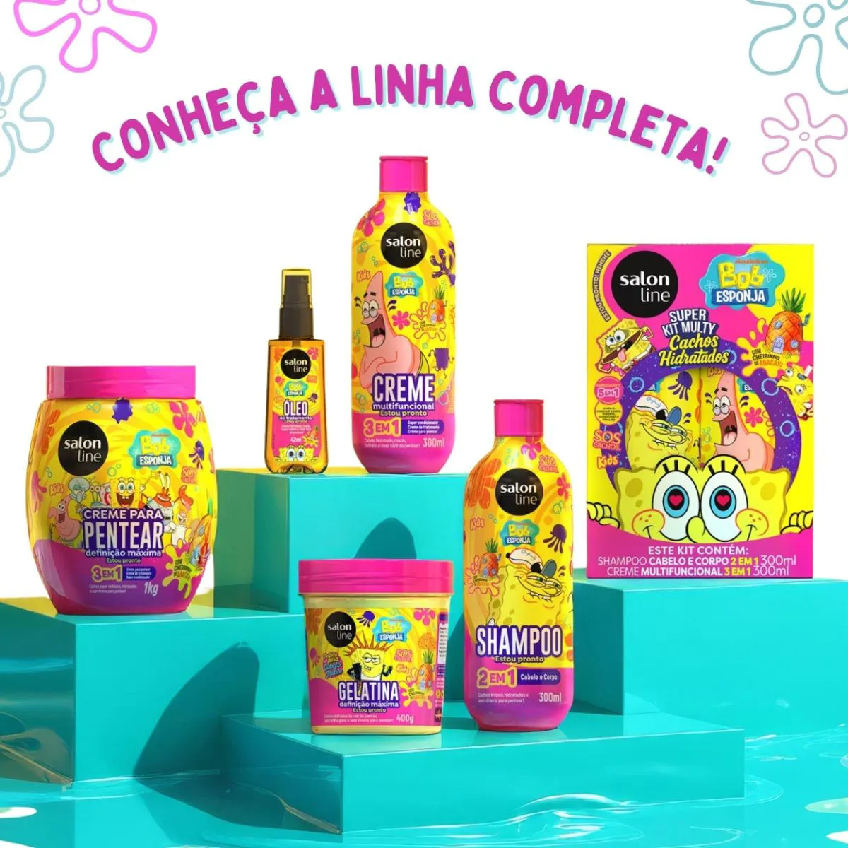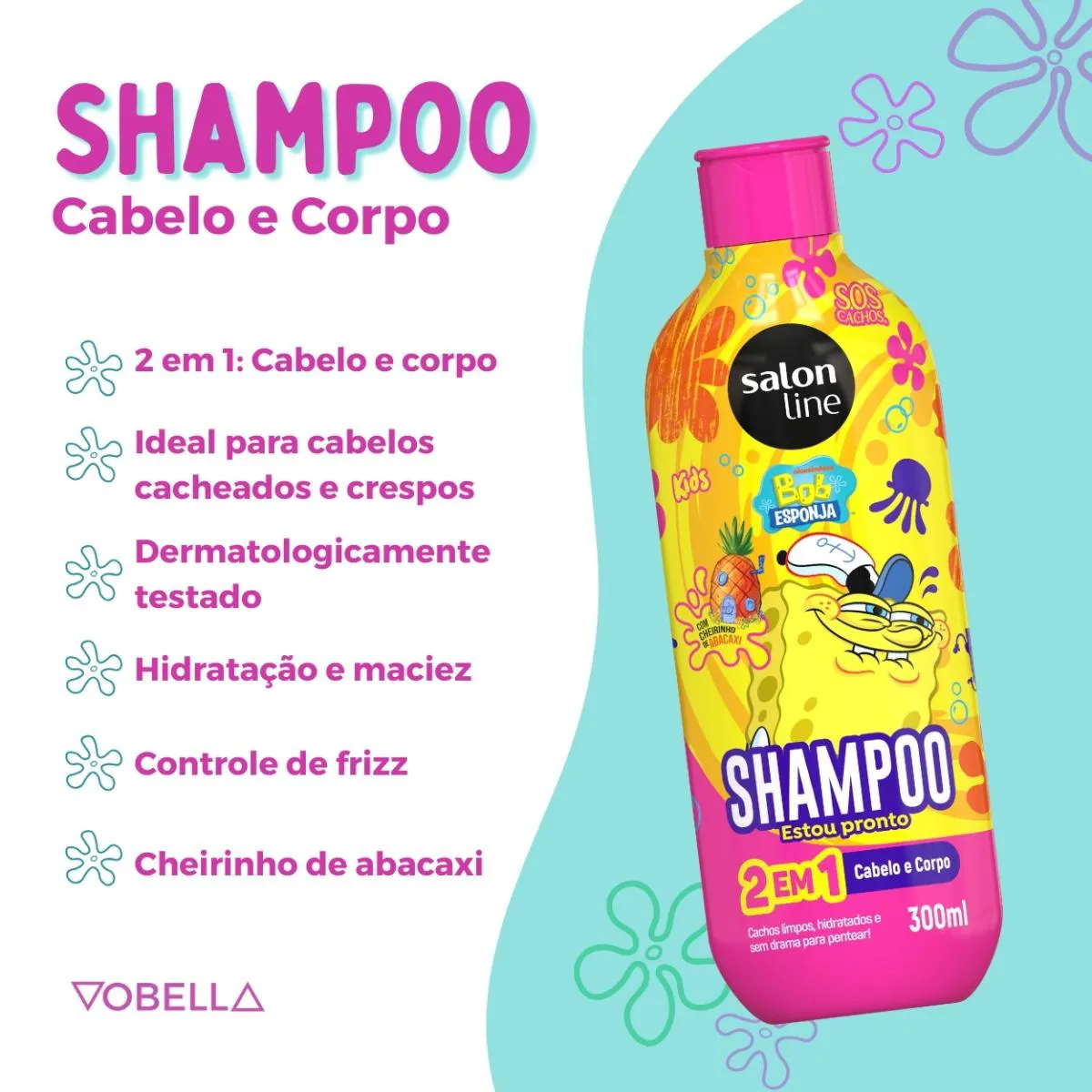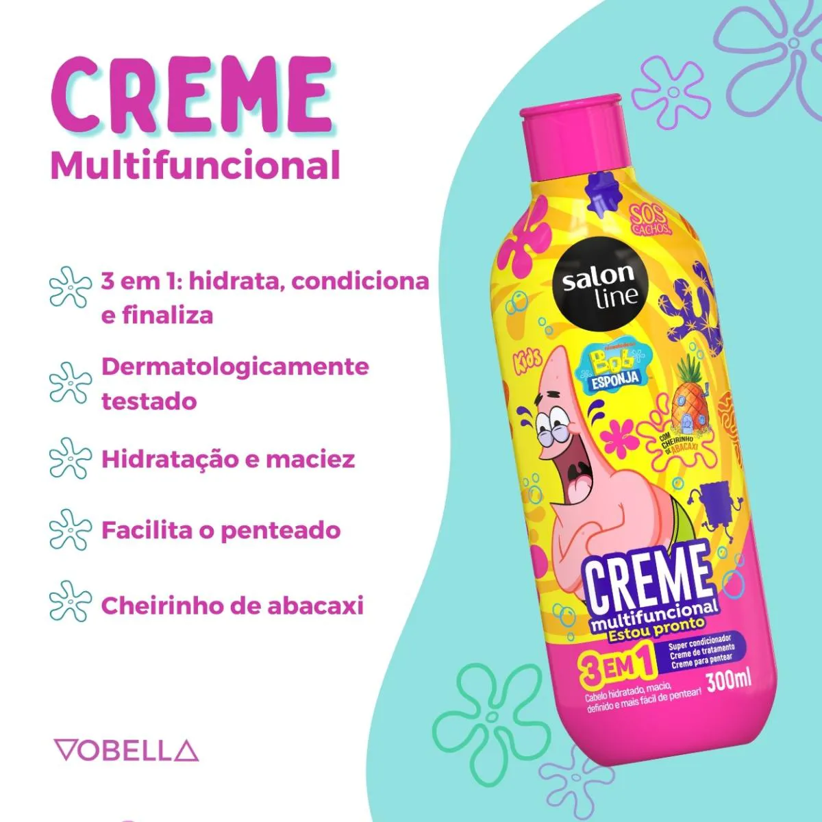 O Kit Shampoo Condicionador Multy SOS Kids Bob Esponja é um conjunto de produtos de higiene infantil composto por um shampoo 2 em 1 e um creme multifuncional 3 em 1, desenvolvido especialmente para o cuidado capilar de crianças.