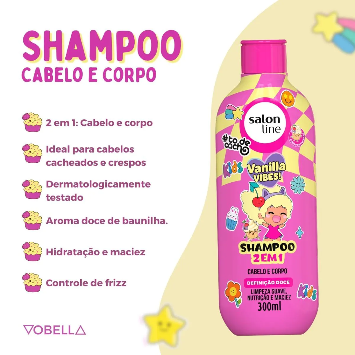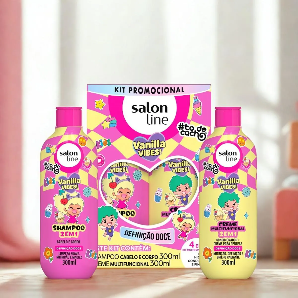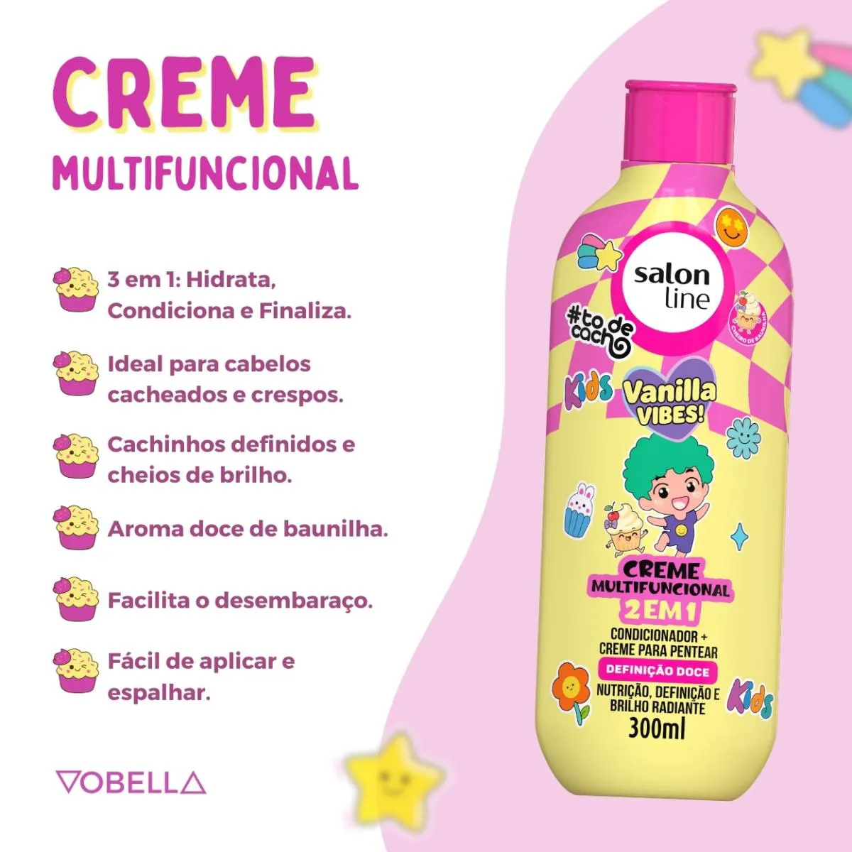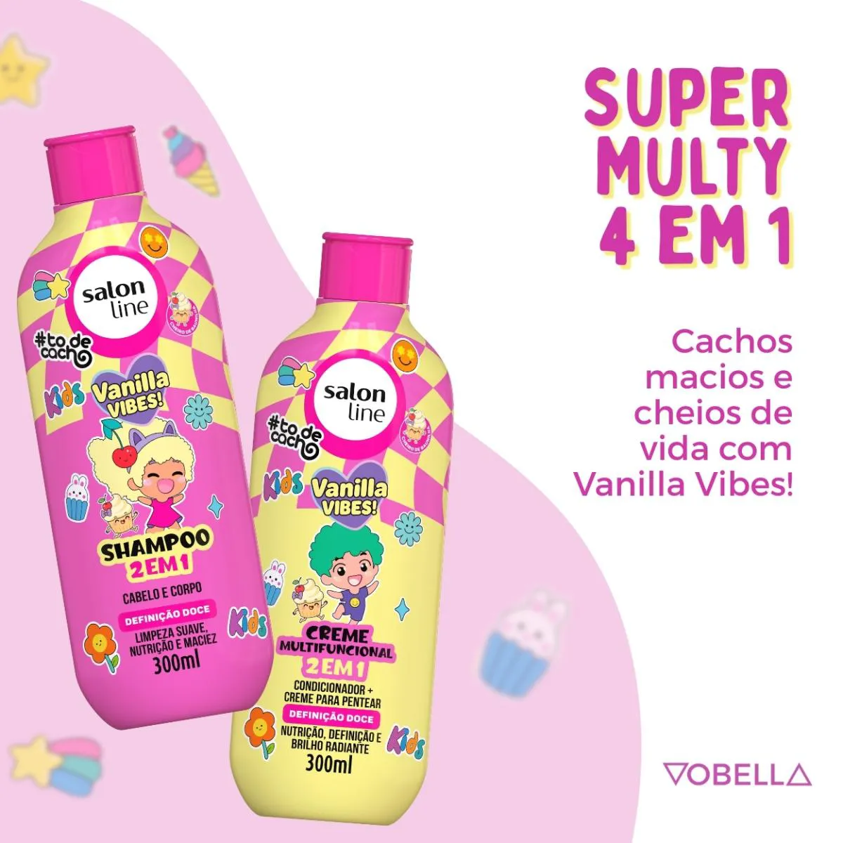Com fórmula suave, prática e perfumada, o Kit Shampoo Creme Multy To de Cacho Kids Vanilla Vibes garante cachinhos definidos, hidratados e cheirosos, tornando o cuidado diário divertido e especial. Garanta já o seu!