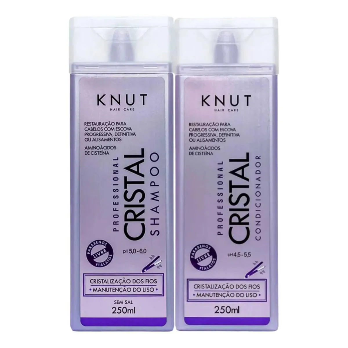 Kit para cabelos com escova progressiva, definitiva ou alisamento. Kit Knut Cristal Duo mantém o liso e repara os danos. Ele reconstrói a fibra capilar e confere nutrição, para devolver a beleza do cabelo.Kit Knut Cristal Duo promove uma revitalização intensa, que deixa os fios muito mais maleáveis, fáceis de pentear e brilhantes.