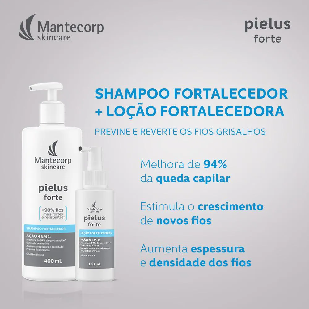 Produtos inclusos no kit: 1 UNIDADE: shampoo Fortalecedor Pielus Forte - 400ml1 UNIDADE: Solução Capilar Pielus Forte - spray 120ml