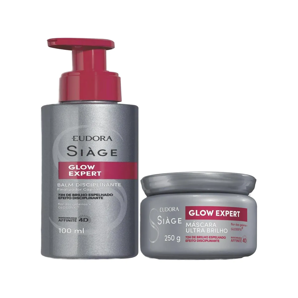 O Kit Siàge Glow Expert Leave-in Balm + Máscara Capilar é um conjunto de produtos capilares da linha Siàge Glow Expert, com fórmulas inovadoras que penetram na fibra capilar e alinham os fios rebeldes. O Leave-in Balm contém micropartículas de Flor das Geleiras e o blend Glossfix, que promovem brilho e disciplina aos cabelos. Já a Máscara de Brilho também possui micropartículas de Flor das Geleiras e Glossfix, um blend de ativos exclusivo, para tratamento e embelezamento dos cabelos.