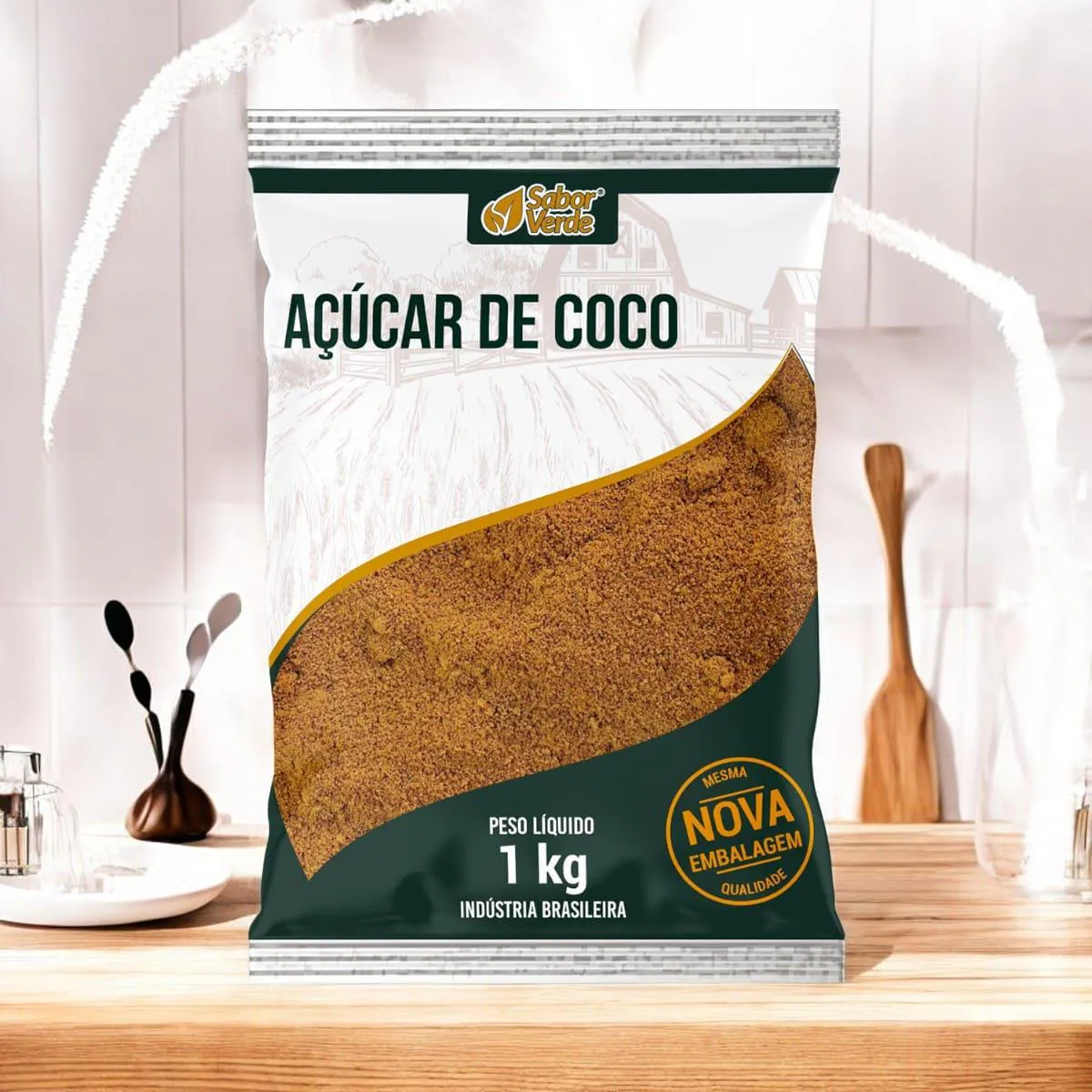 O Açúcar de Coco da Sabor Verde é um adoçante natural obtido a partir da seiva das flores do coqueiro. Produzido por meio de um processo de secagem e moagem, resulta em cristais dourados com sabor suave e levemente caramelizado. É uma alternativa saudável ao açúcar refinado, mantendo nutrientes como potássio, ferro, zinco e vitaminas do complexo B, além de possuir um índice glicêmico mais baixo.