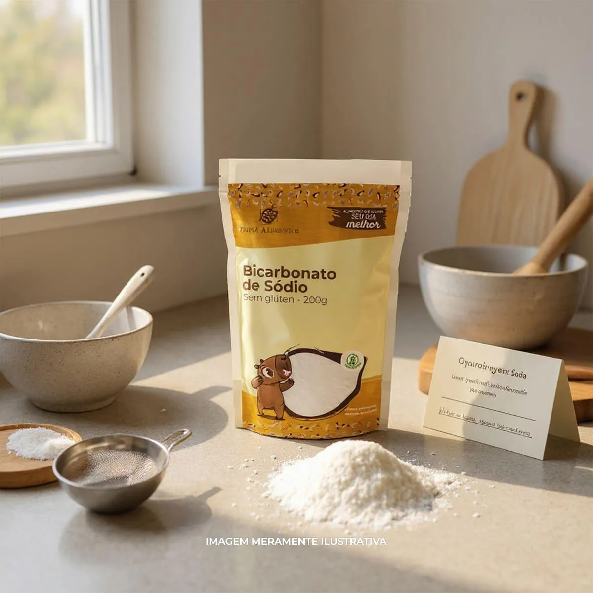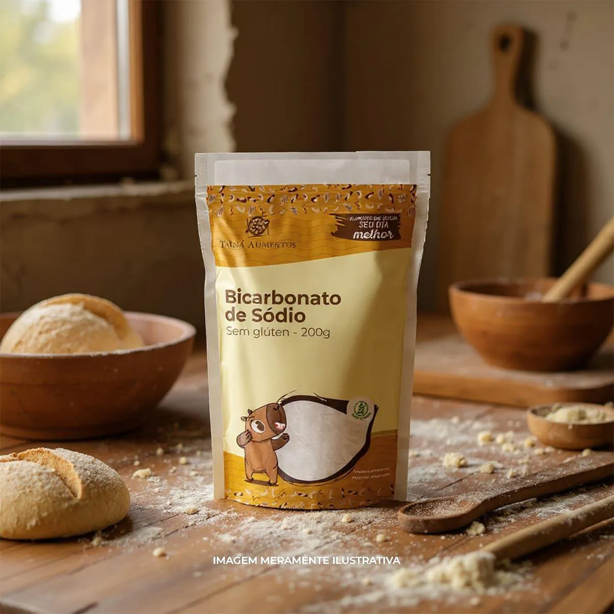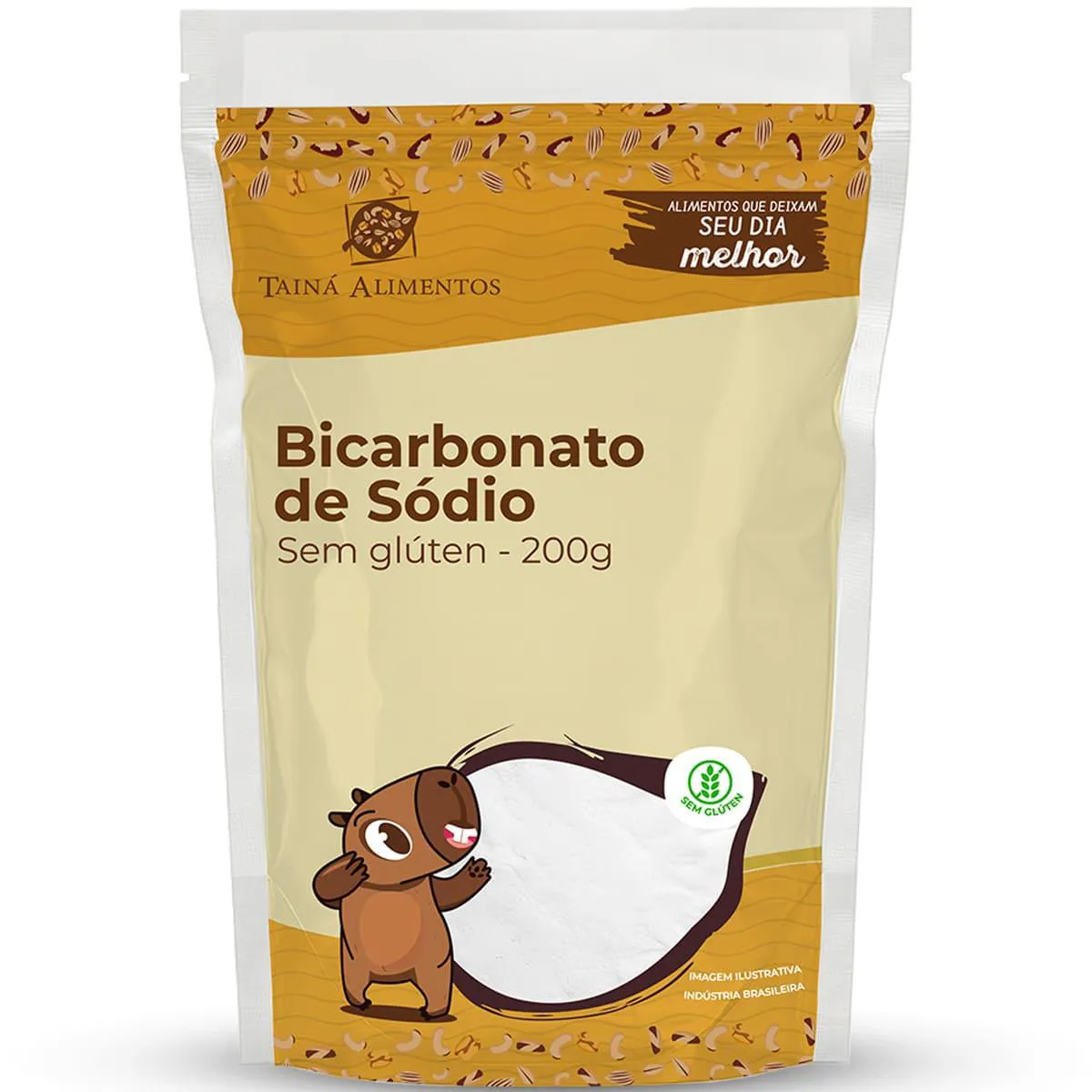 O Bicarbonato de Sódio 200g da Tainá Alimentos é uma substância química de fórmula NaHCO₃, apresentada em forma de pó fino. É puro, com adição de antiumectante (dióxido de silício) em algumas versões, para evitar que o pó fique úmido ou aglomere. O produto é rotulado como sem glúten, vegano, livre de lactose e de leite.Para que serve?