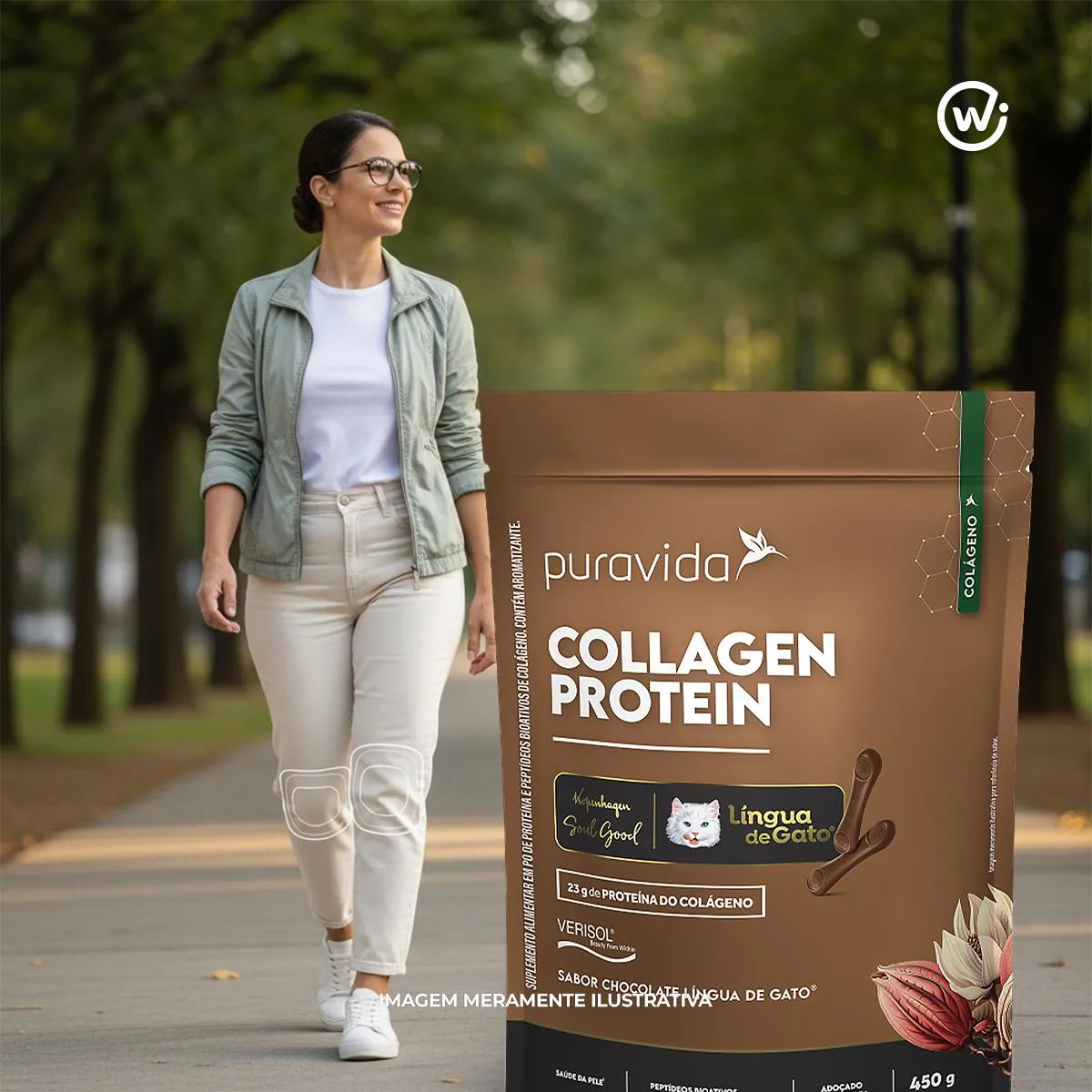 Colágeno hidrolisado; cacau em pó; peptídeos bioativos de colágeno hidrolisado (Verisol®) com peso molecular médio de 2kDa; aromatizantes naturais; espessante goma xantana; edulcorante glicosídeos de esteviol (Stevia rebaudiana Bertoni).Alérgicos: Pode conter amêndoa, amendoim, avelãs, castanha‑de‑caju, castanhas, castanha‑do‑pará, macadâmias, nozes, pecãs e pistaches. Não contém glúten segundo o rótulo, mas pode haver traços por compartilhamento de equipamento. O Puravida Collagen Protein Sabor Língua de Gato 450g é um suplemento alimentar em pó que oferece 23g de proteína de colágeno por porção de 32g, além de contar com 2,5g de peptídeos bioativos de colágeno Verisol, reconhecida pela promoção da saúde da pele.