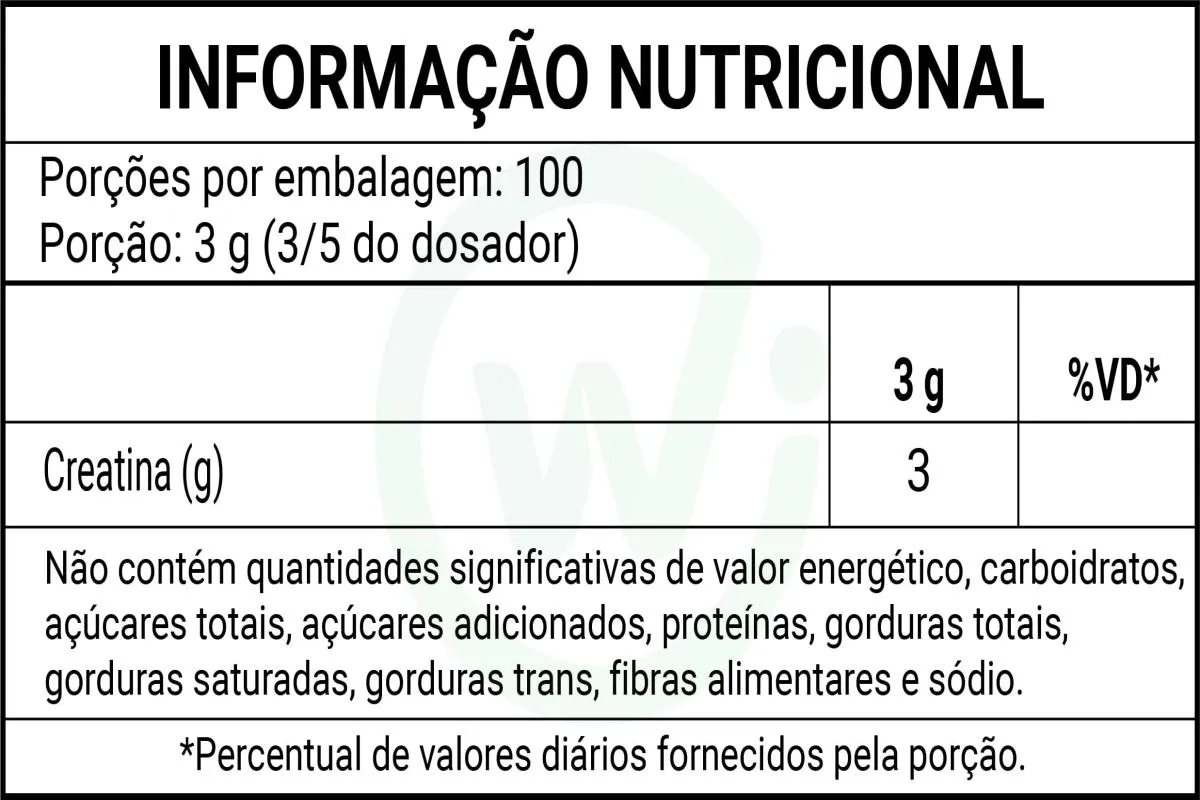 Cada porção de 3 g entrega exatamente 3 g de creatina, atendendo protocolos comuns de suplementação para desempenho.Versatilidade de uso