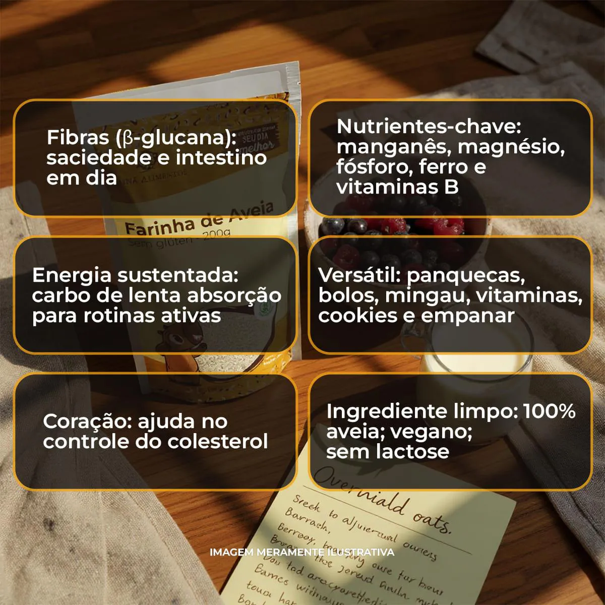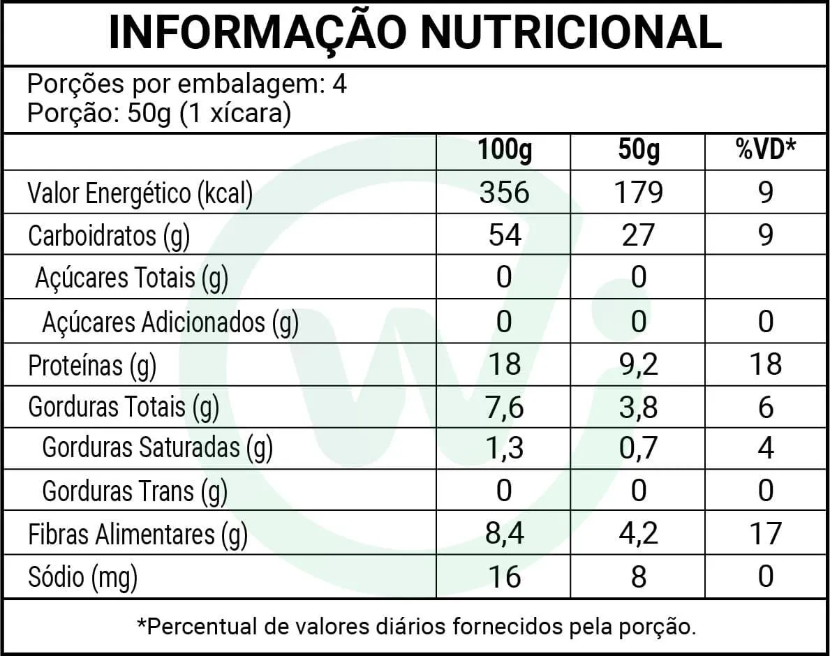 - Auxilia no controle de glicose e colesterol, proporcionando sensação de saciedade devido ao teor de fibras.