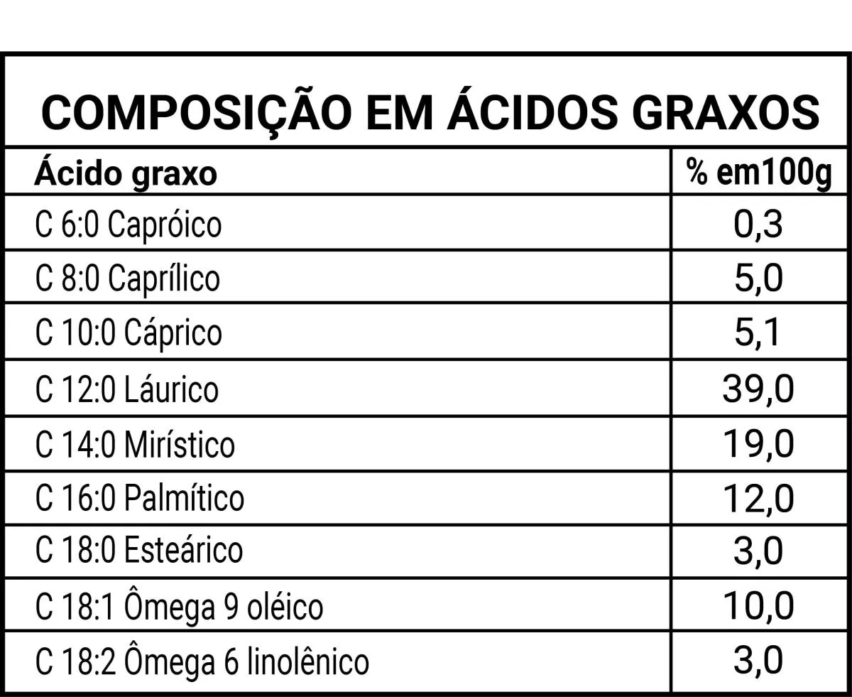 Devido à extração a partir da película do coco, este óleo possui sabor e aroma menos intensos, sendo ideal para preparações culinárias onde se deseja manter o sabor original dos alimentos.Baixa Acidez