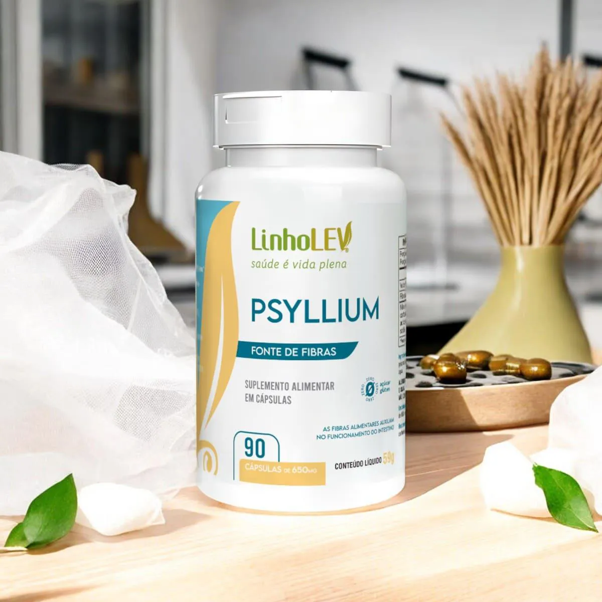 Psyllium 90 Cápsulas - Linho Lev é um suplemento alimentar à base de fibras naturais extraídas da casca da semente de Plantago ovata, conhecido por suas propriedades benéficas para a saúde digestiva e controle de peso. Este produto é ideal para quem busca melhorar o trânsito intestinal e manter uma dieta equilibrada.Para que serve?