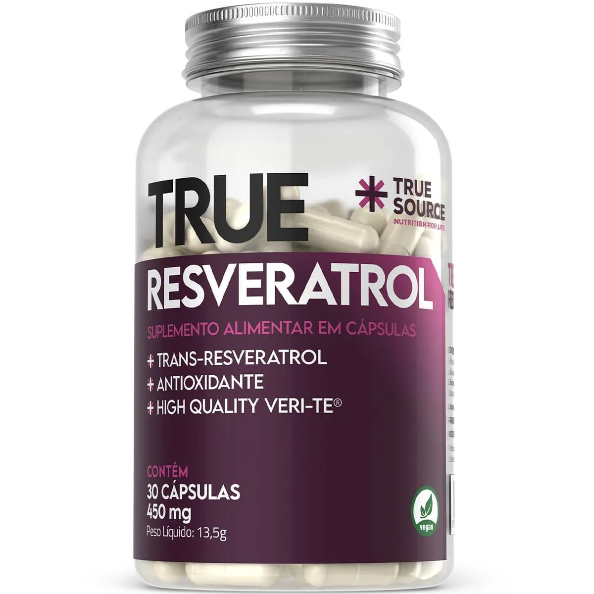 O Resveratrol 450 mg da True Source é um suplemento antioxidante formulado com trans-resveratrol certificado (Veri-te®), vitamina e, licopeno e extrato de semente de uva, promovendo proteção celular, saúde cardiovascular e suporte ao envelhecimento saudável. Cada cápsula contém 147 mg de trans-resveratrol, 10 mg de vitamina E, 5 mg de licopeno e 100 mg de proantocianidinas, garantindo alta eficácia antioxidante. A fórmula é vegana, sem glúten, lactose, açúcar ou corantes artificiais.