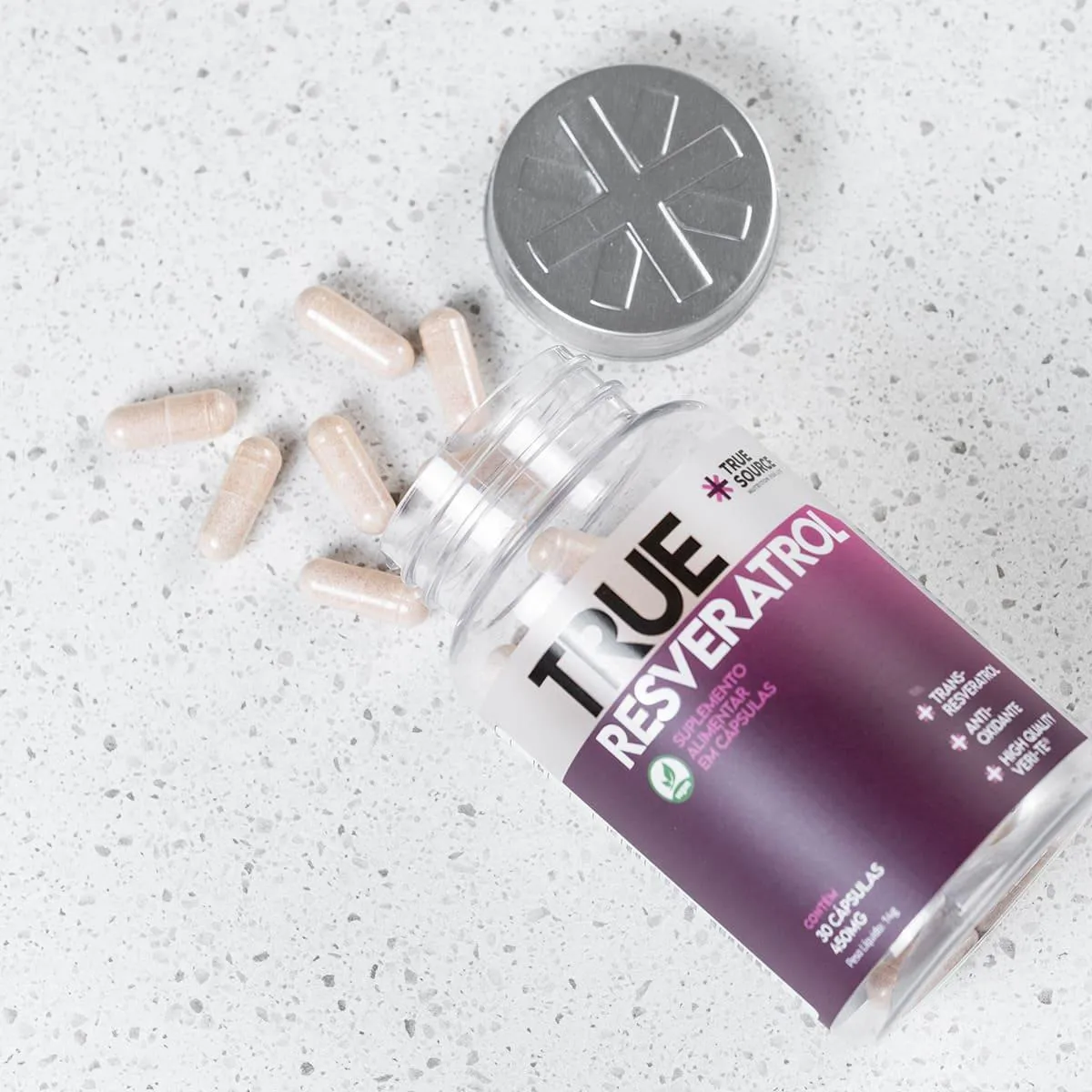 O True Resveratrol da True Source é um suplemento antioxidante premium que combina trans‑resveratrol (forma mais ativa), licopeno, extrato de semente de uva (Vitis vinifera) e vitamina E. O trans‑resveratrol é certificado pela Veri‑Te®, garantindo alta eficácia e qualidade.Para que serve?