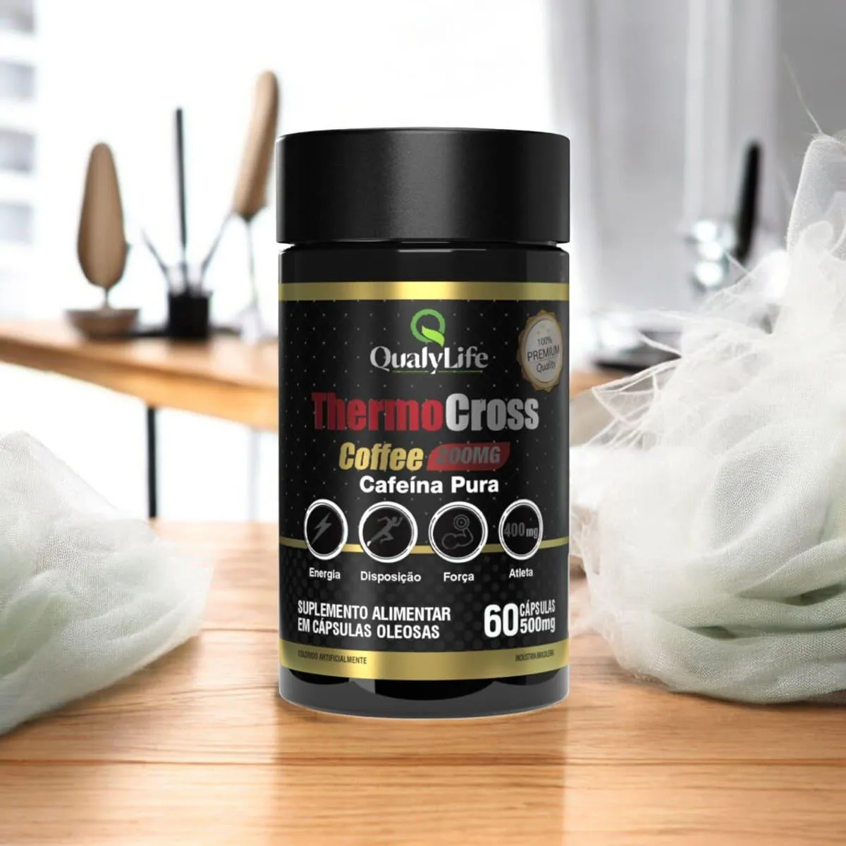 O Thermo Cross da QualyLife é um suplemento alimentar em cápsulas que combina ingredientes naturais reconhecidos por suas propriedades termogênicas e energéticas. Cada cápsula contém 750 mg de uma formulação que inclui óleo de soja e cafeína, destinada a auxiliar no aumento do metabolismo e na disposição física.Para que serve?
