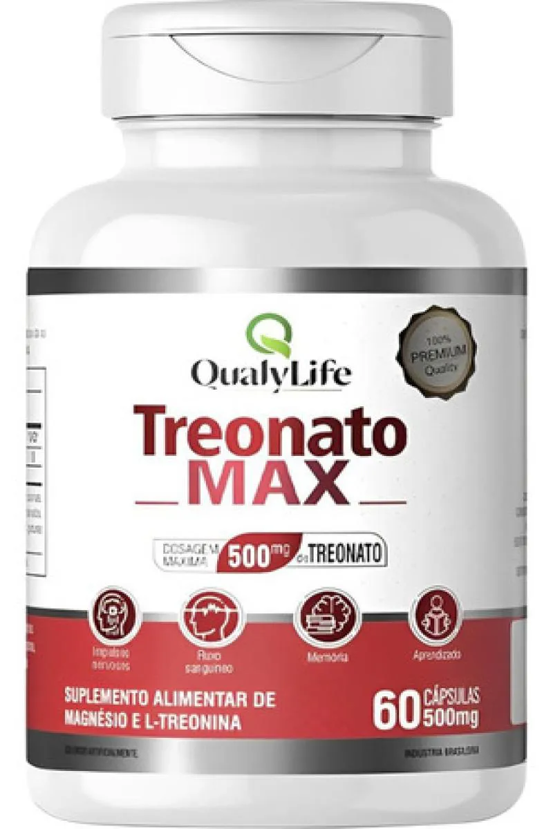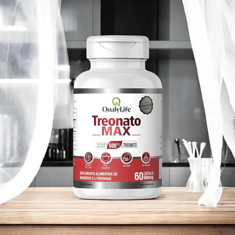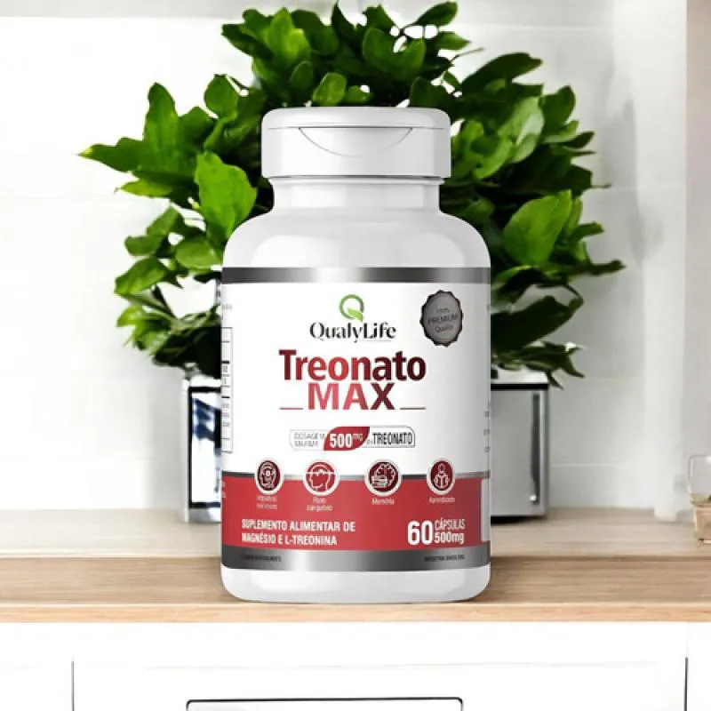 Treonato Max é um suplemento alimentar em cápsulas desenvolvido pela QualyLife, que combina magnésio e L-treonina. Cada cápsula contém 74 mg de magnésio e de L-treonina. Essa formulação visa melhorar a função cognitiva, memória e saúde cerebral, além de combater o estresse e promover relaxamento, apoiando o sistema nervoso de forma eficaz e segura.Para que serve?