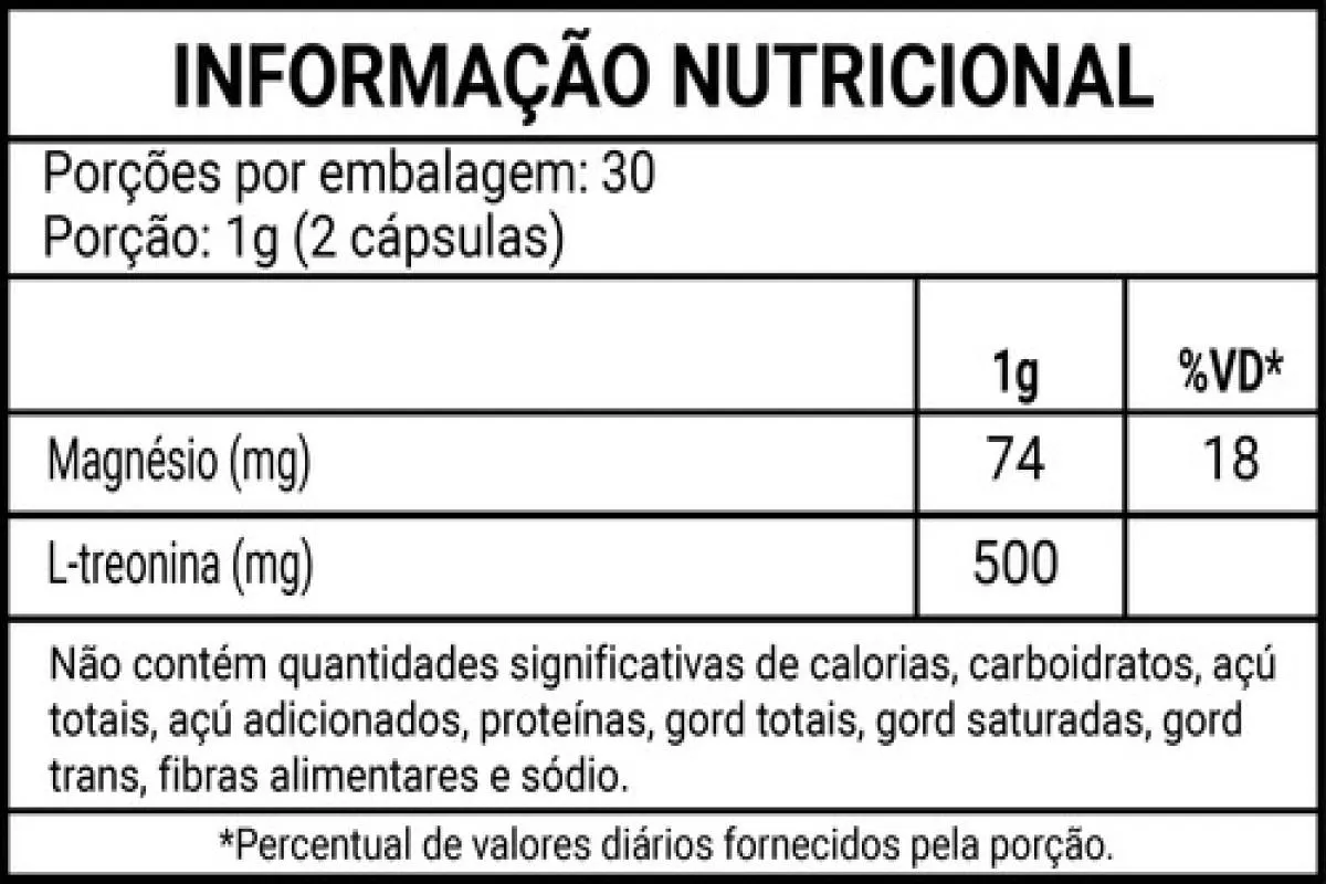 - Combina magnésio e L-treonina para eficácia.