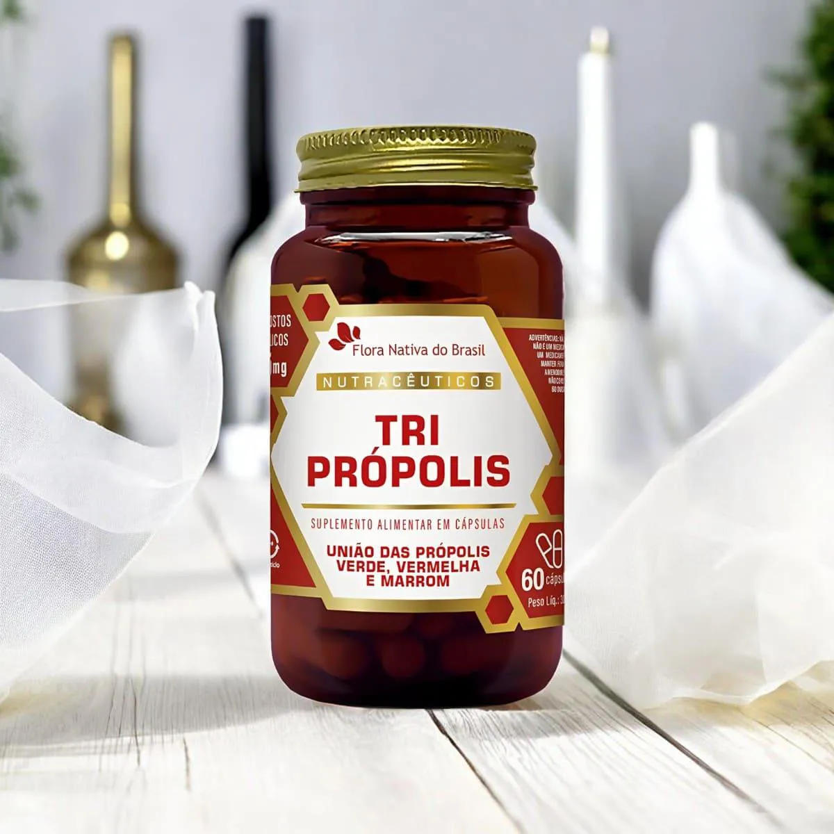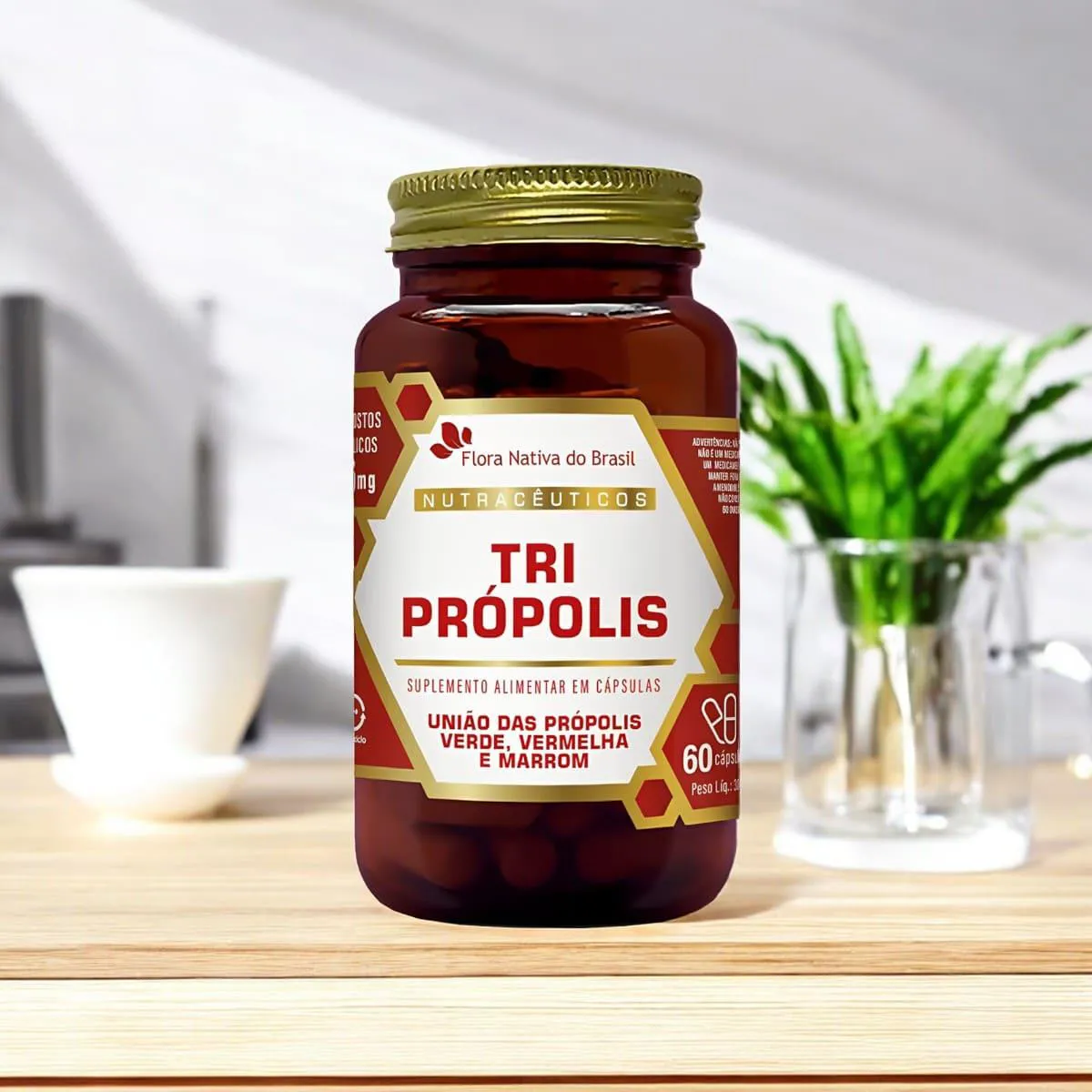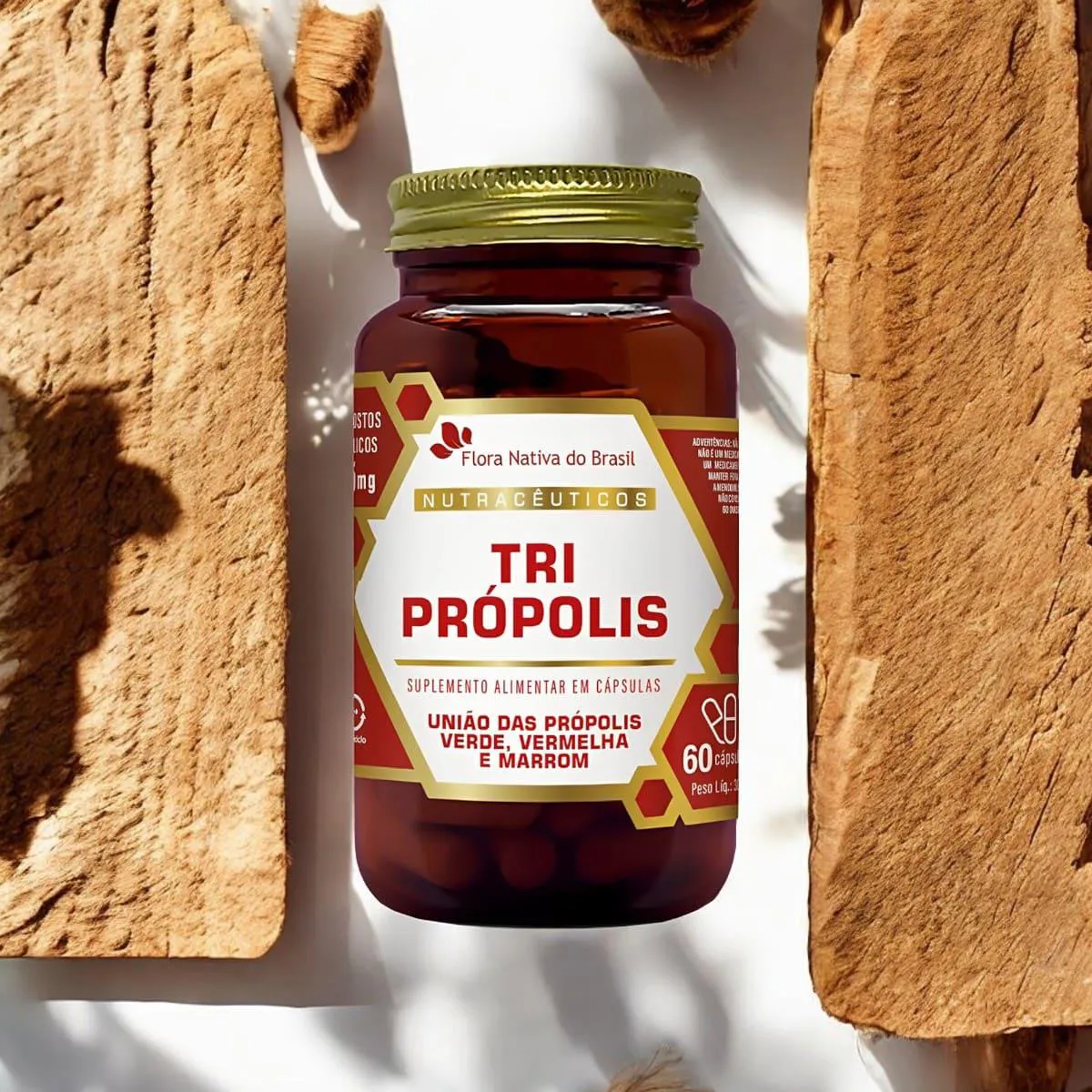 O Tri Própolis da Flora Nativa é um suplemento alimentar em cápsulas que combina três tipos de própolis: verde, vermelha e marrom. Cada embalagem contém 60 cápsulas, formuladas para fornecer compostos fenólicos que auxiliam na proteção do organismo.Para que serve?