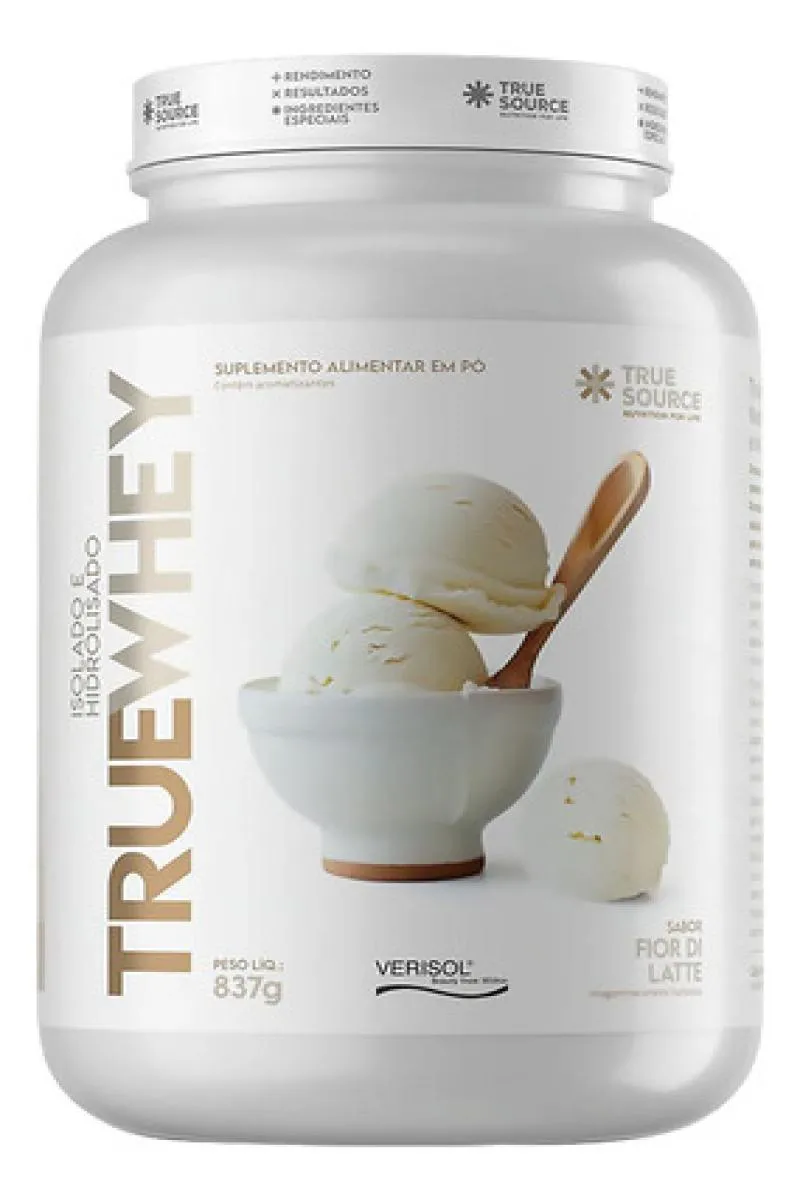 O True Whey Protein Fior di Latte 837g da True Source é um suplemento proteico do tipo hidrolisado + isolado, formulado com alta qualidade para quem busca desempenho e benefícios adicionais.Em cada dose, oferece 23g de proteína e 5,3g de BCAAs, e inclui 2,5g de peptídeos de colágeno Verisol® como componente funcional.