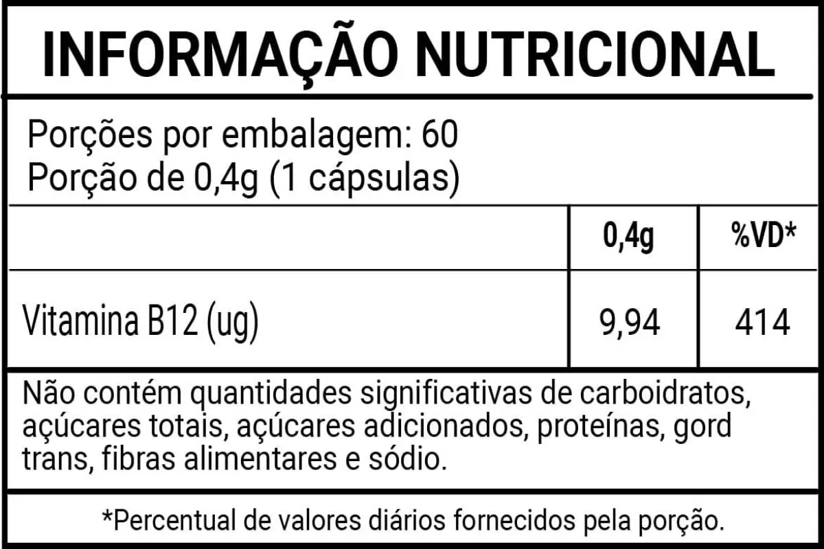 Este produto é indicado para:- Indivíduos com deficiência de vitamina B12, especialmente vegetarianos e veganos, já que a vitamina é predominantemente encontrada em alimentos de origem animal.