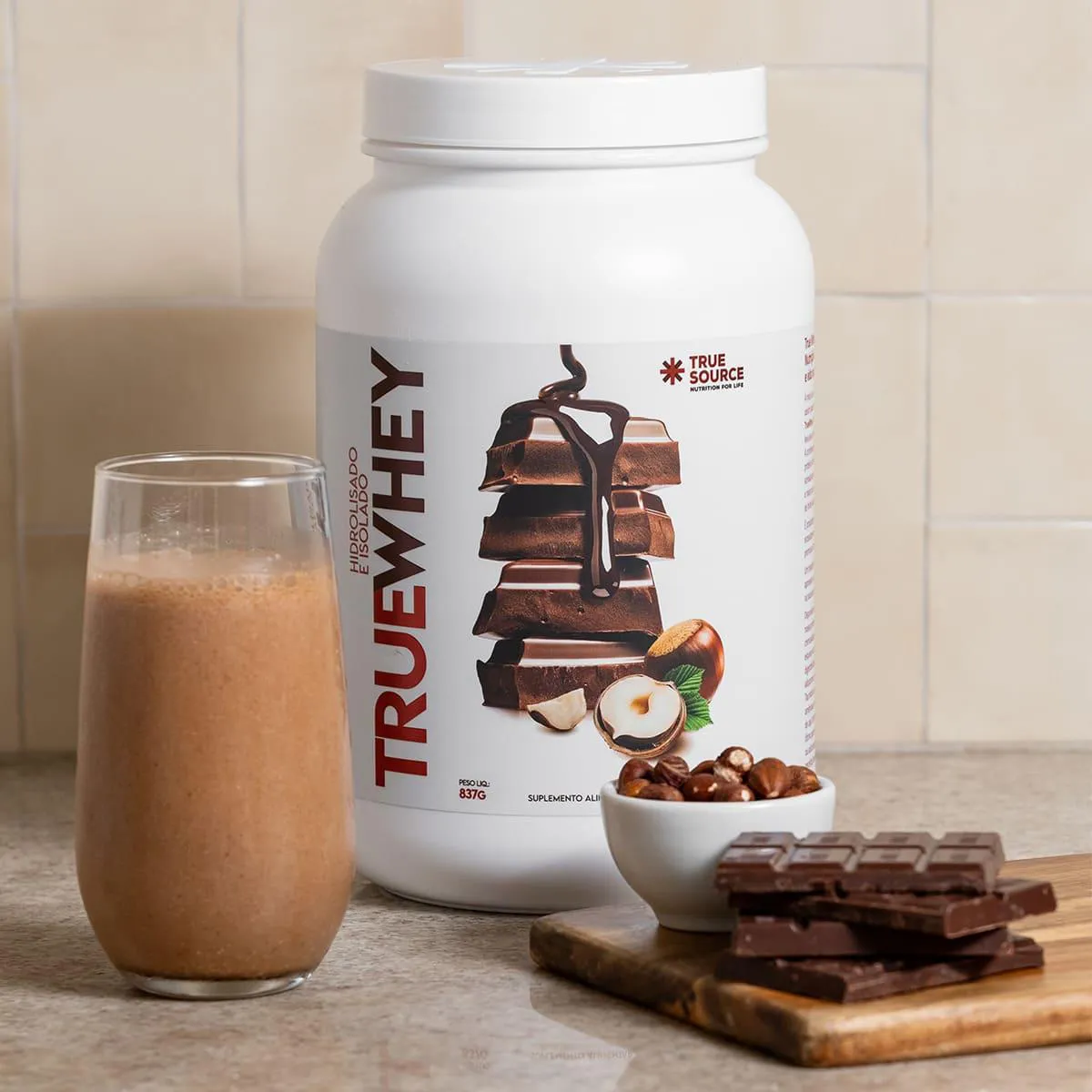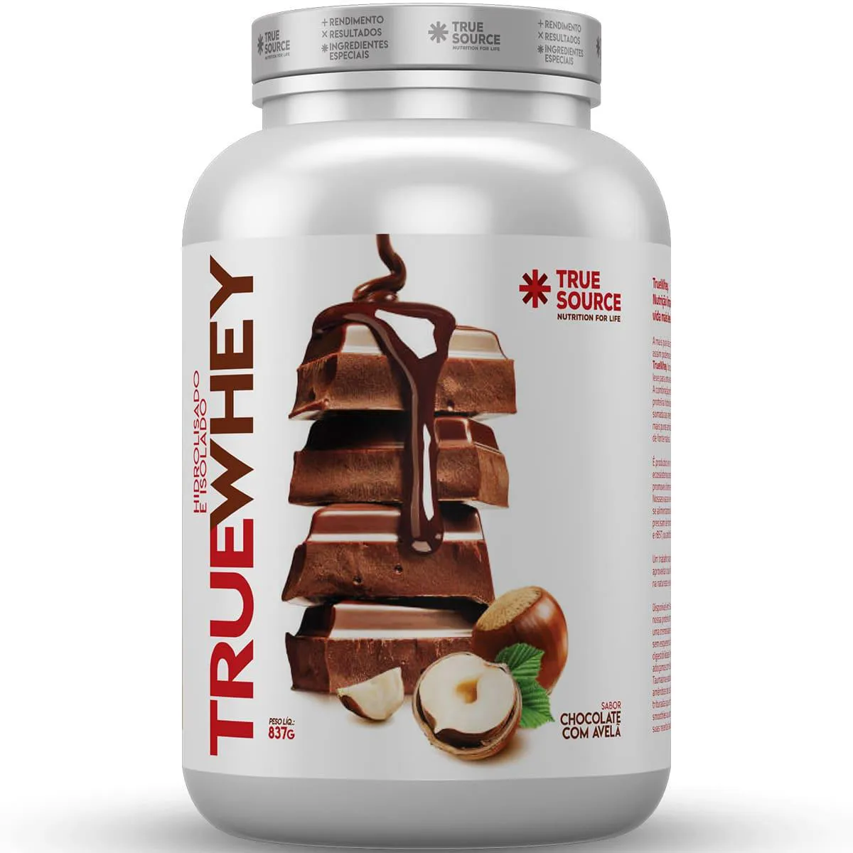 True whey protein chocolate com Avelã 837g True Source: Benefícios, Usos e Indicações