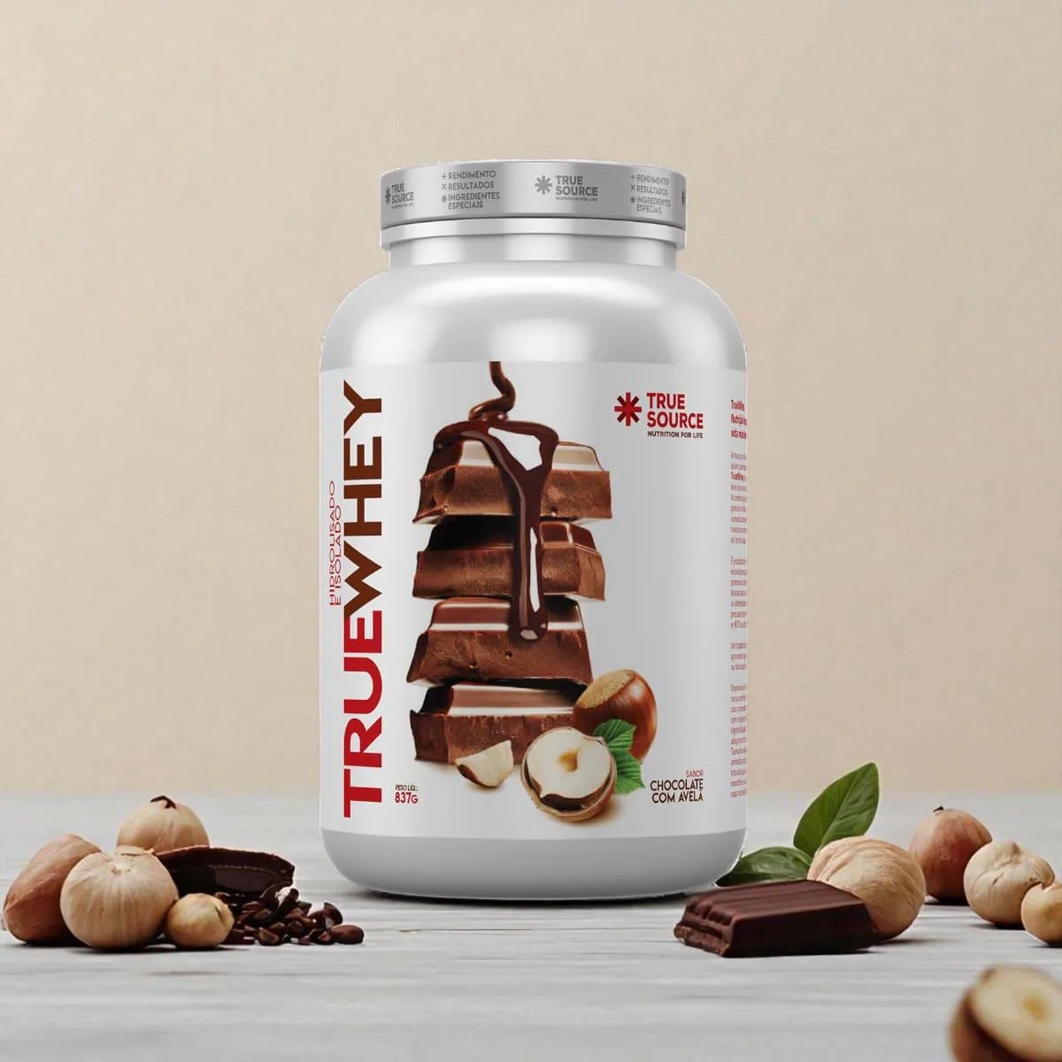 O True Whey Protein Chocolate com Avelã 837 g da True Source é um suplemento proteico premium que combina proteínas do soro do leite nas formas isolada e hidrolisada, apresentando alta pureza e rápida absorção. É adoçado de maneira natural e formulado sem aditivos artificiais, promovendo uma experiência clean e saborosa.Para que serve?