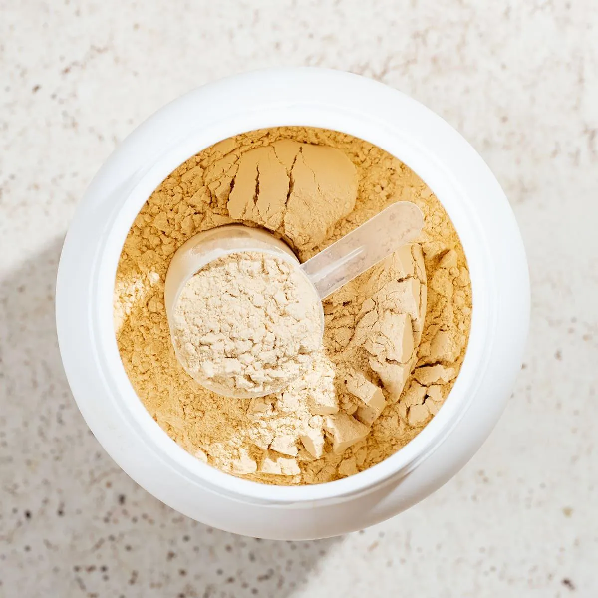 - Misturar 1 medida dosadora (34 g) com cerca de 250 ml de água, leite vegetal ou outra base líquida; pode usar mixer ou coqueteleira
