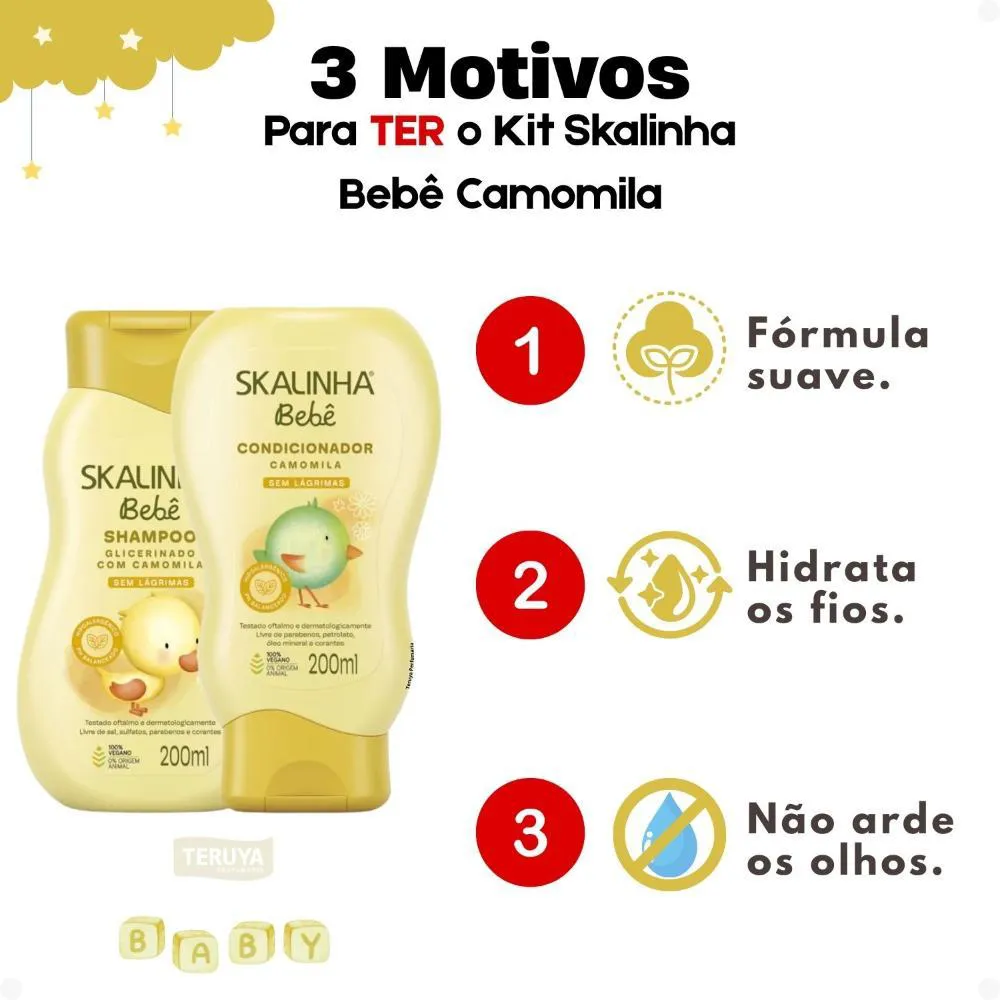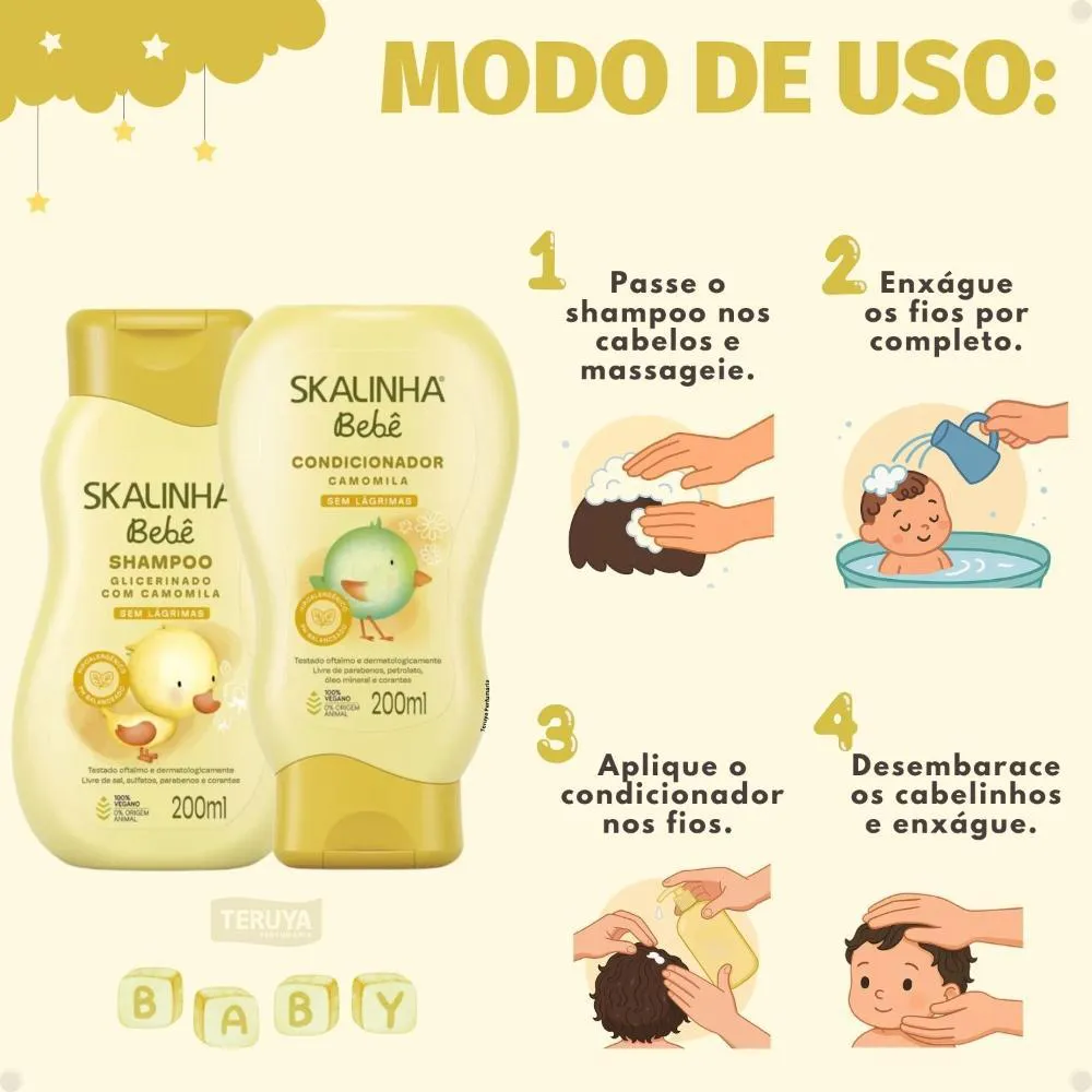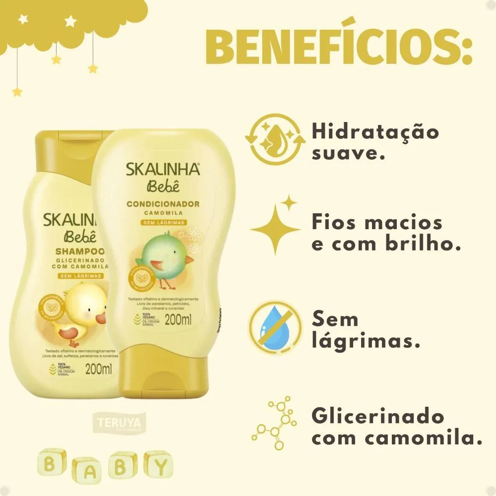 Kit Skalinha Bebê Camomila: shampoo e condicionador 200ml - Cuidado Suave para os Cabelos do seu Bebê
